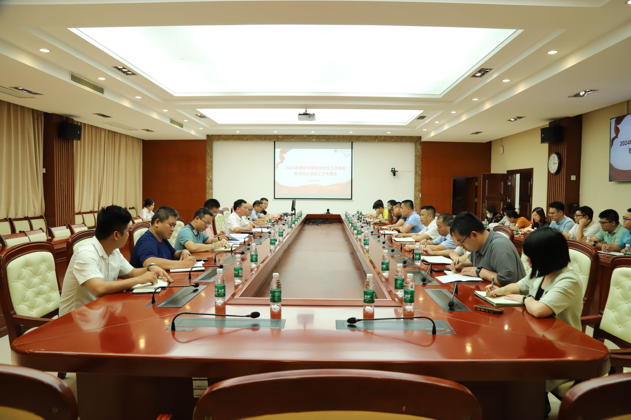 会上,安全保卫处、学生工作部(处)、团委有关负责人分别传达了2024年上半年学生宿舍消防应急疏散演练实施方案、暑期学生安全工作要点和共青团中央关于高校应急处置工作的相关通知文件精神,对相关工作进行提醒强调。