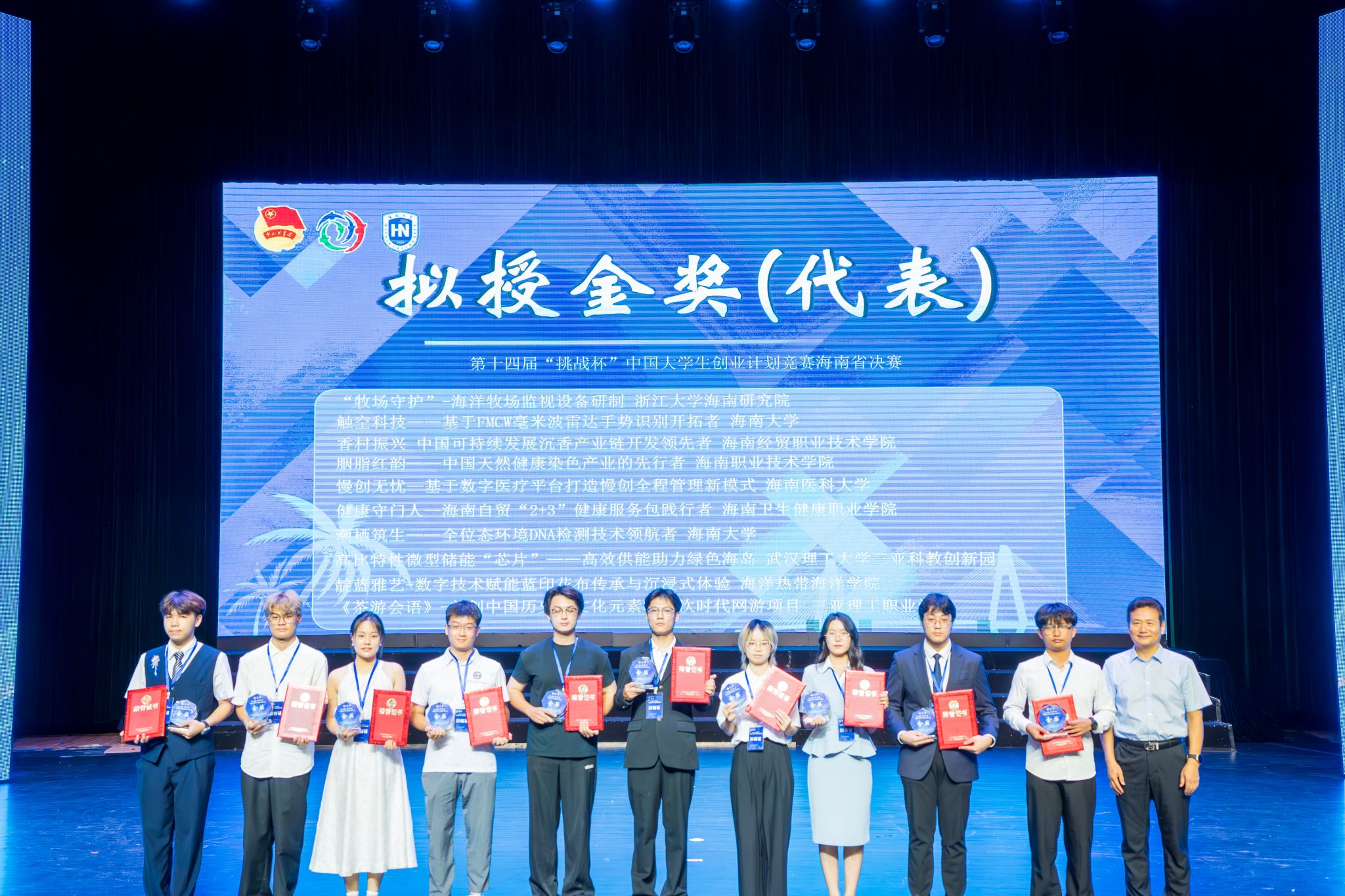 近日,第十四届“挑战杯”海南省大学生创业计划竞赛在海口举行。米兰milan官方网站共17支队伍进入省赛,7支队伍入围终审决赛,斩获金奖2项、银奖5项和铜奖10项,创历史新高,学校获评“优秀组织奖”,获奖项目数、综合成绩均位列职业院校组第一名,最终捧得“优胜杯”,实现了学校在“挑战杯”创业计划竞赛的新突破。