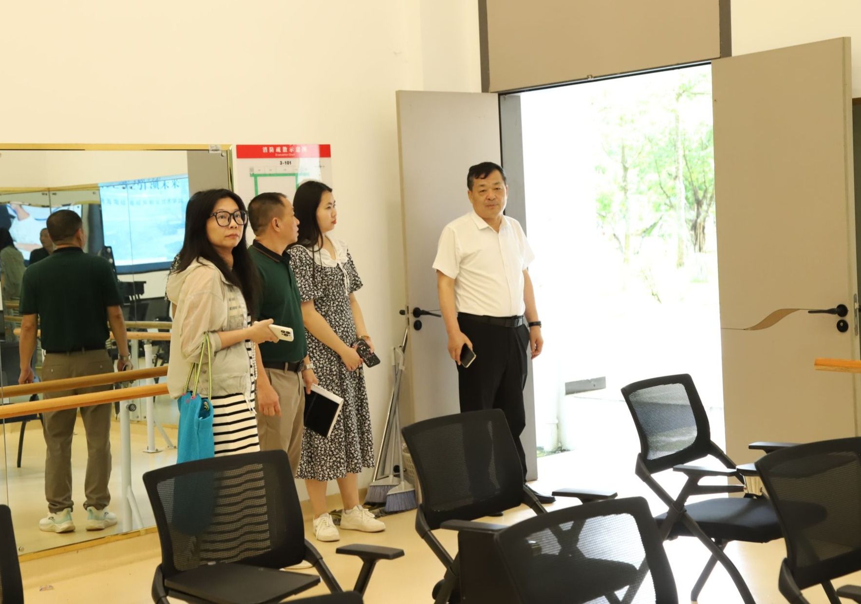 国际旅游学院有关负责人陪同付晓军一行参观考察校园,介绍了旅游形象展示实训室的基本情况。双方还就民航模拟训练舱建设进行深入交流探讨。