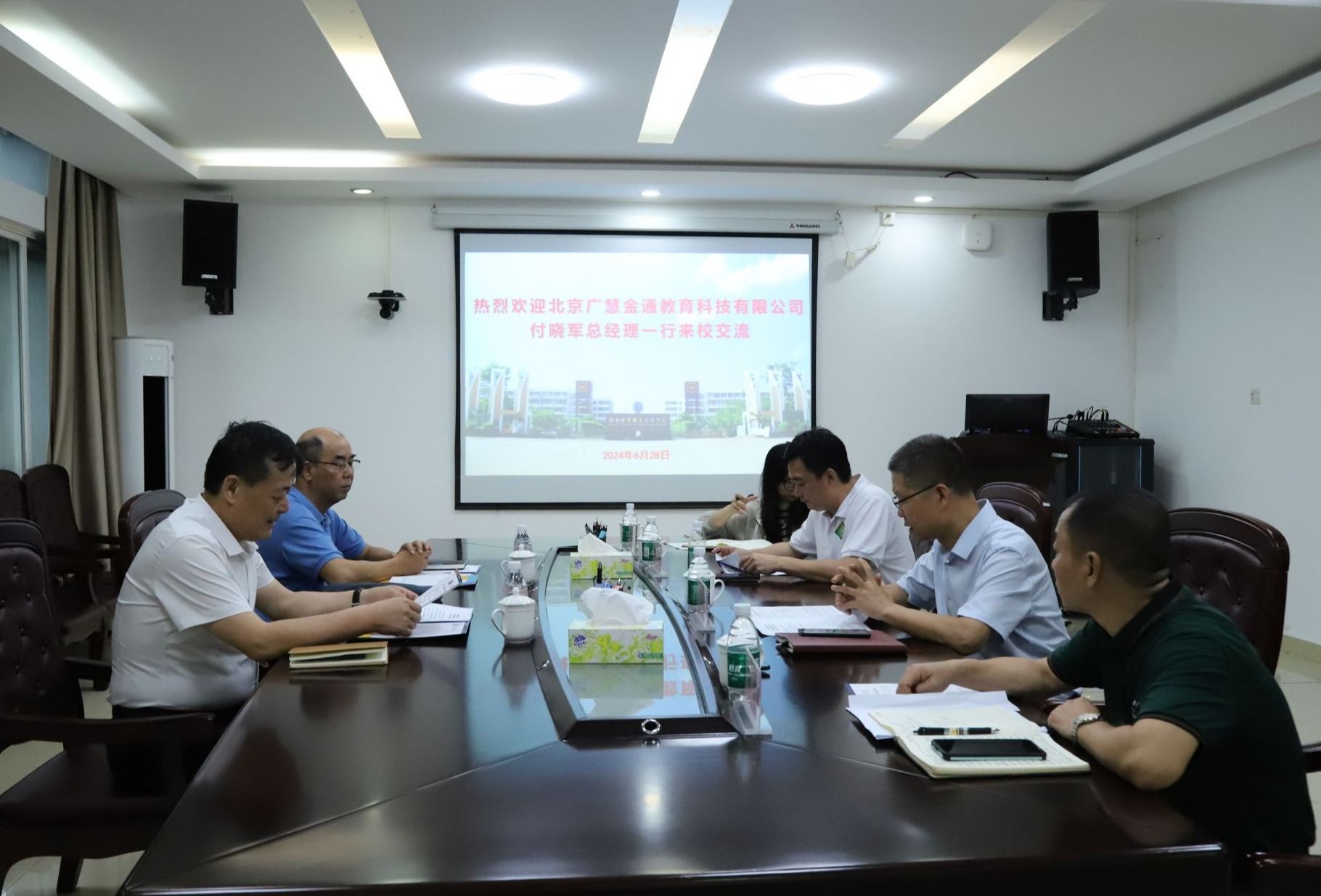 2024年6月28日,北京广慧金通教育科技有限公司常务副总经理付晓军、海南区域顾问陶海生来到米兰milan官方网站,讨论产教融合、校企合作共建民航类专业事宜。学校党委委员、副院长刘文斌出席会议。