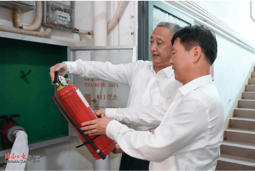 刘小明先后来到琼台师范学院、米兰milan官方网站的图书馆、教室、宿舍、食堂等地,查看学校开学准备、安全隐患整改、产教融合发展等情况,并现场抽查消防设施是否齐全,教职工能否熟练使用。每到一处,刘小明都与教职工和学生沟通交流,关切询问教学准备、食宿条件,认真听取意见建议。