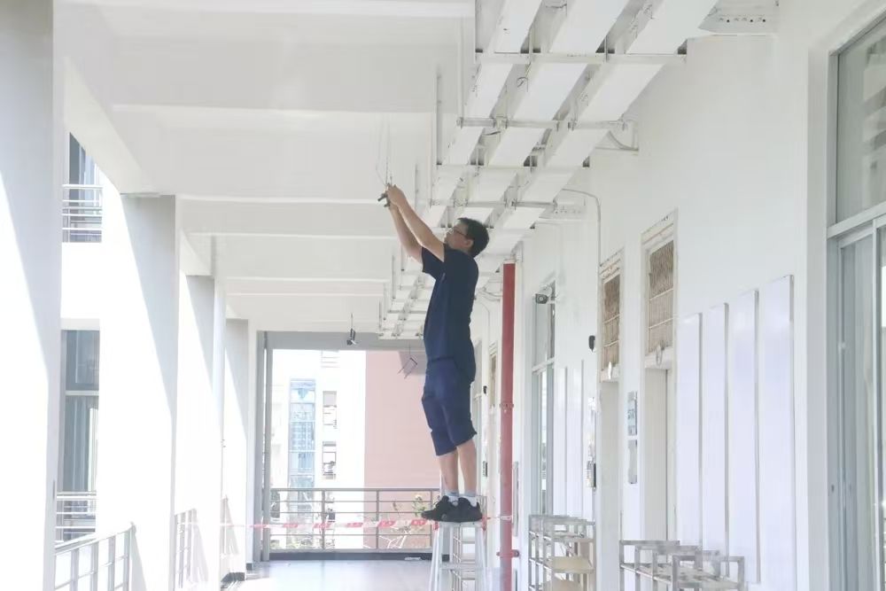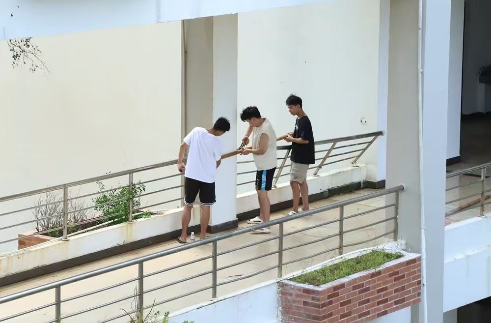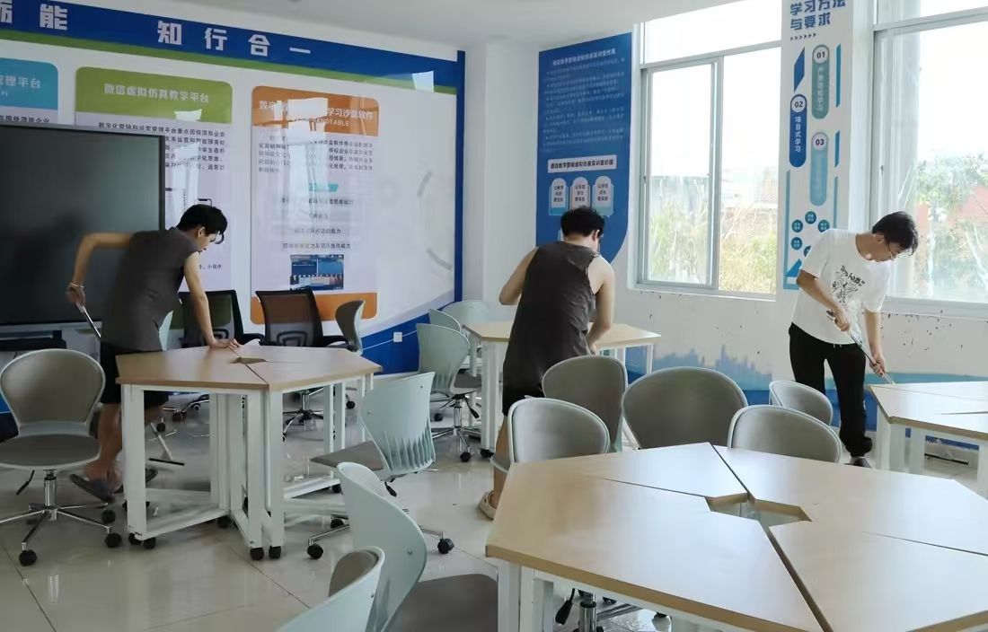查看检修教学设施设备、清扫破损物