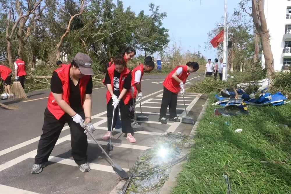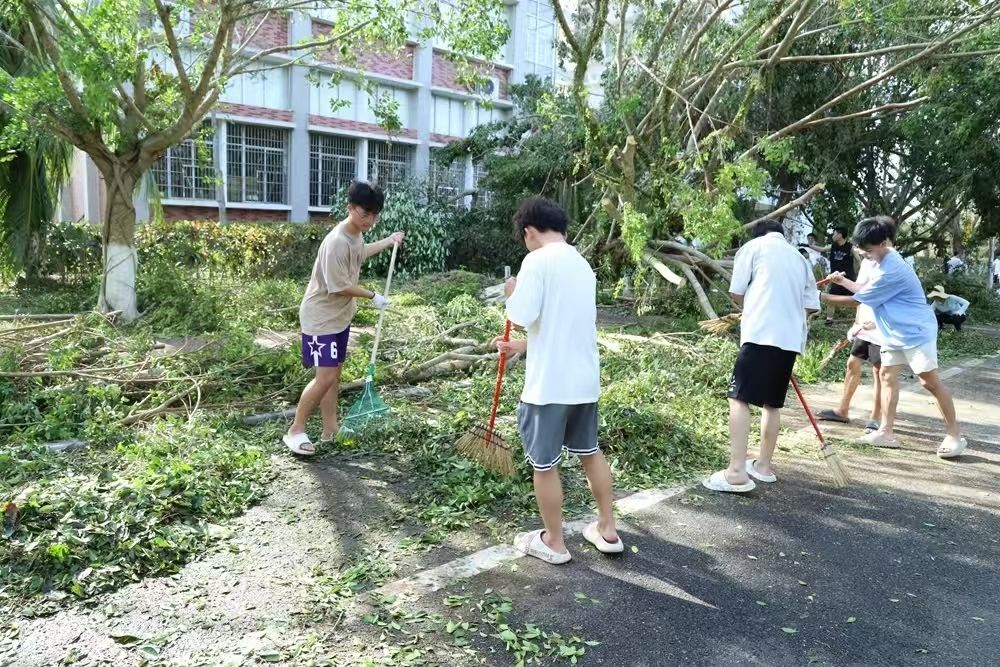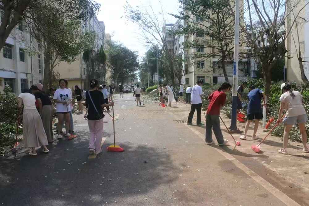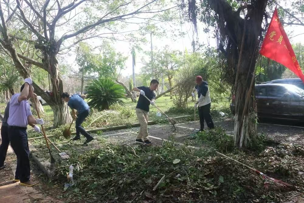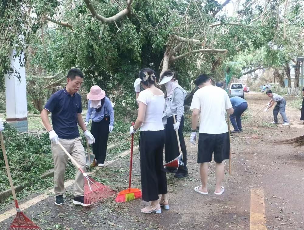 对伏倒树木、路面积水、残枝败叶等垃圾进行全面清扫清运