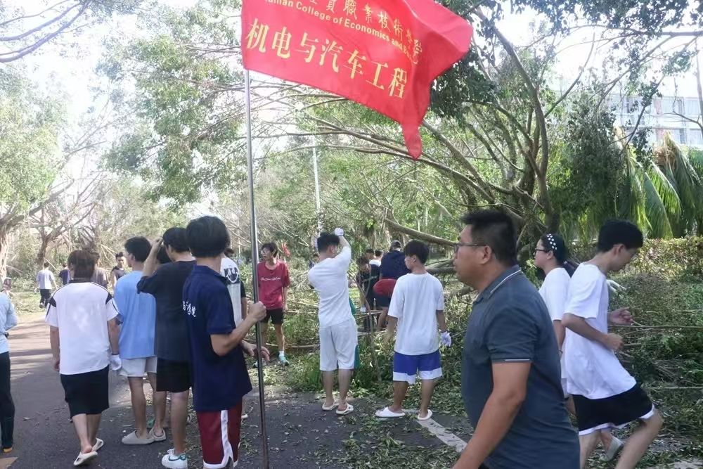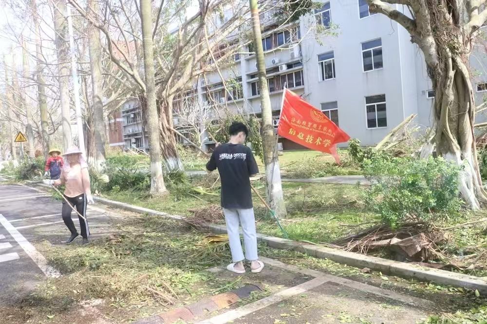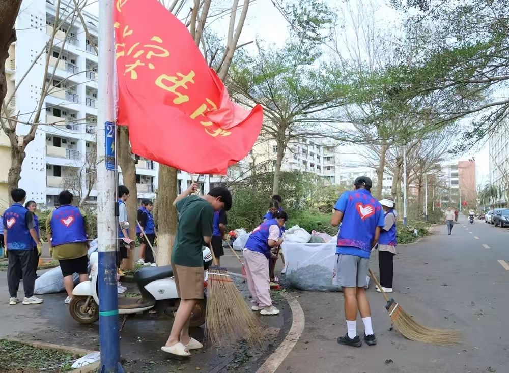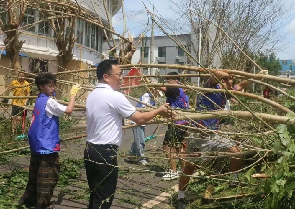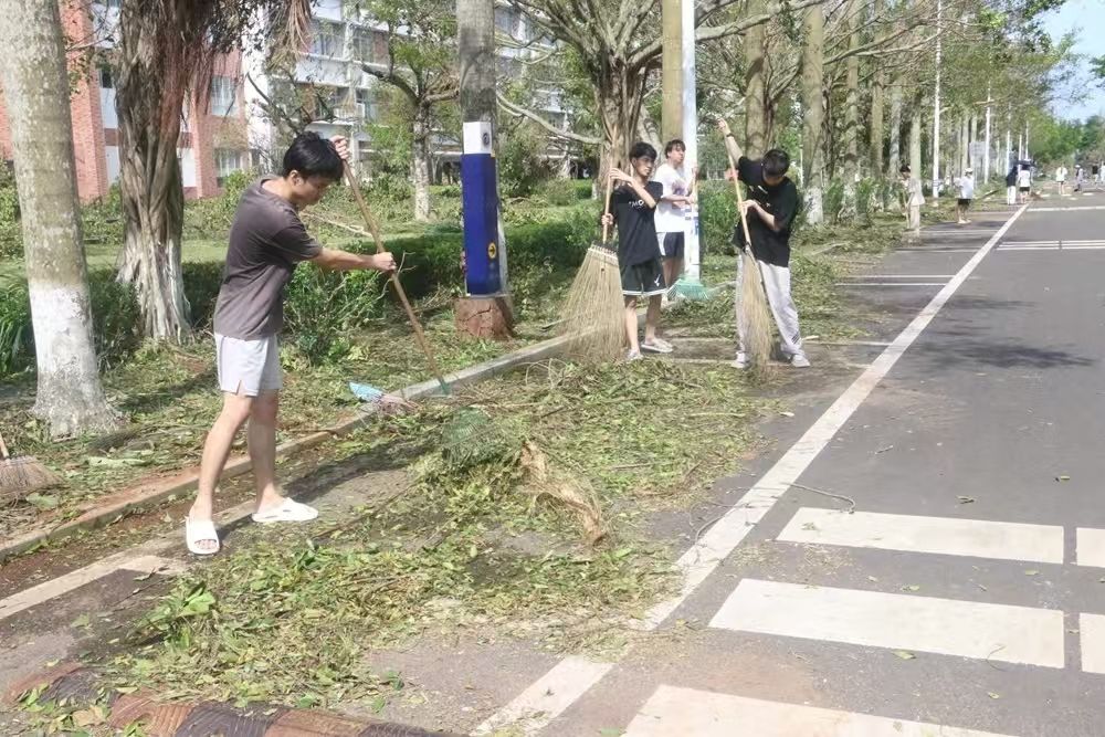 对伏倒树木、路面积水、残枝败叶等垃圾进行全面清扫清运
