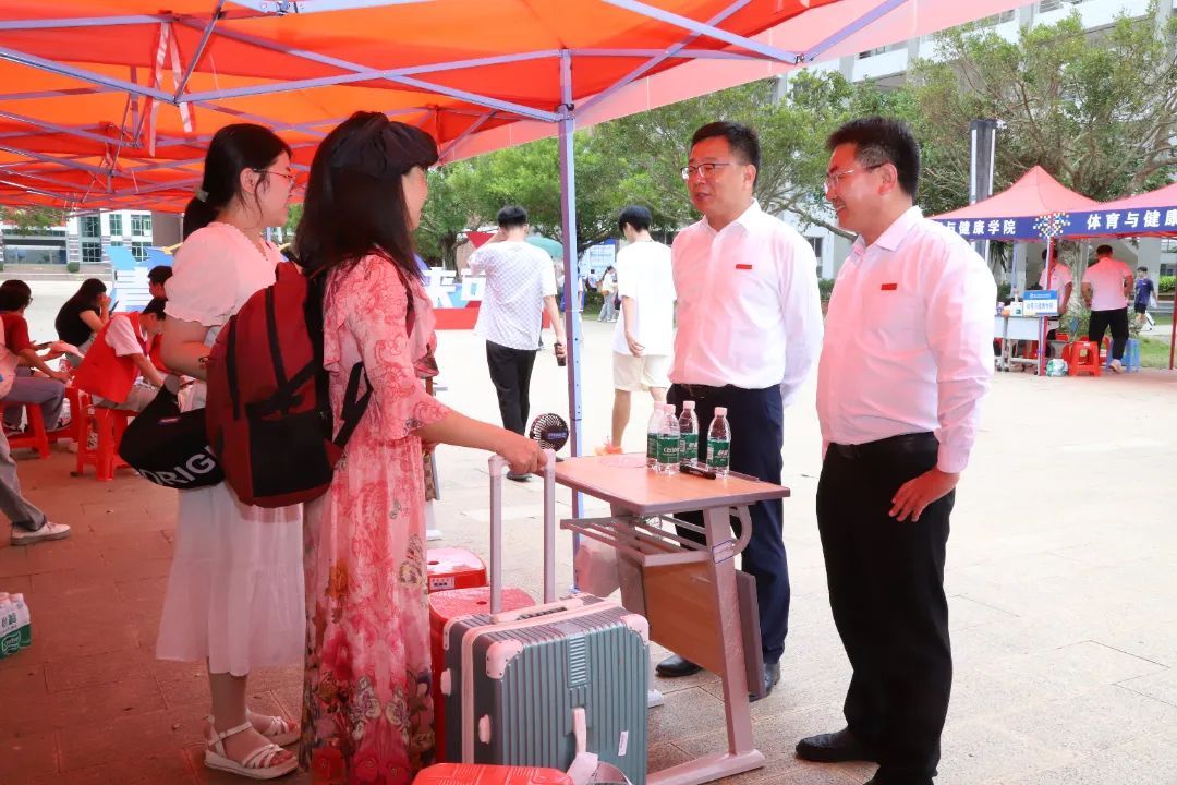 学校党委书记王华、校长崔昌华等校领导们来到新生报到处,看望师生志愿者。详细了解迎新工作开展情况,与新生和家长亲切交流,慰问迎新一线的师生员工和志愿者。“一路上你们辛苦了”“孩子来到米兰您就放心吧”“学校还在继续灾后重建,希望你们一起加入”……校领导们感谢各位家长对学校的信任,欢迎各位同学成为米兰大家庭的一员,勉励大家传承校训“笃学砺能、知行合一”,弘扬“脊梁精神”,迎接一个充实快乐的大学生活。
