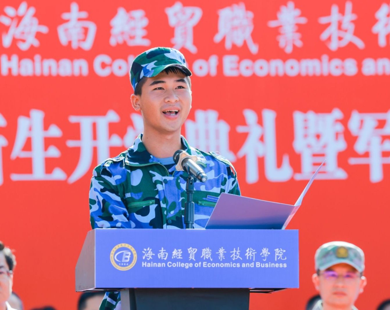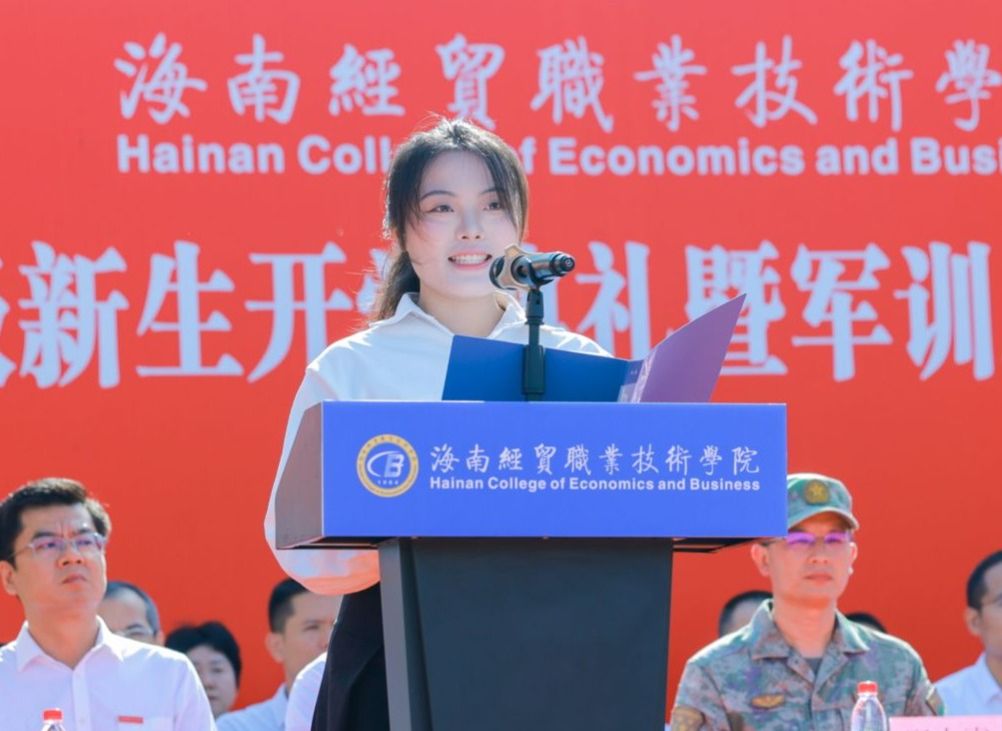 教师代表黄闻寰从海南的椰子树、三角梅和大海的品质视角寄语新生,希望同学们要像椰子树一样拥有坚韧的意志,在面对困难时挺直腰杆,始终站稳脚跟,在修复创伤后更加茁壮成长;要像三角梅一样拥有花开常在的人生,找到属于自己的位置和舞台,尽情展示美丽,保持绽放的持久力量;要像大海一样拥有宽广博大的胸怀,多一份宽容,多一份接纳,收获更多的善意和尊重。