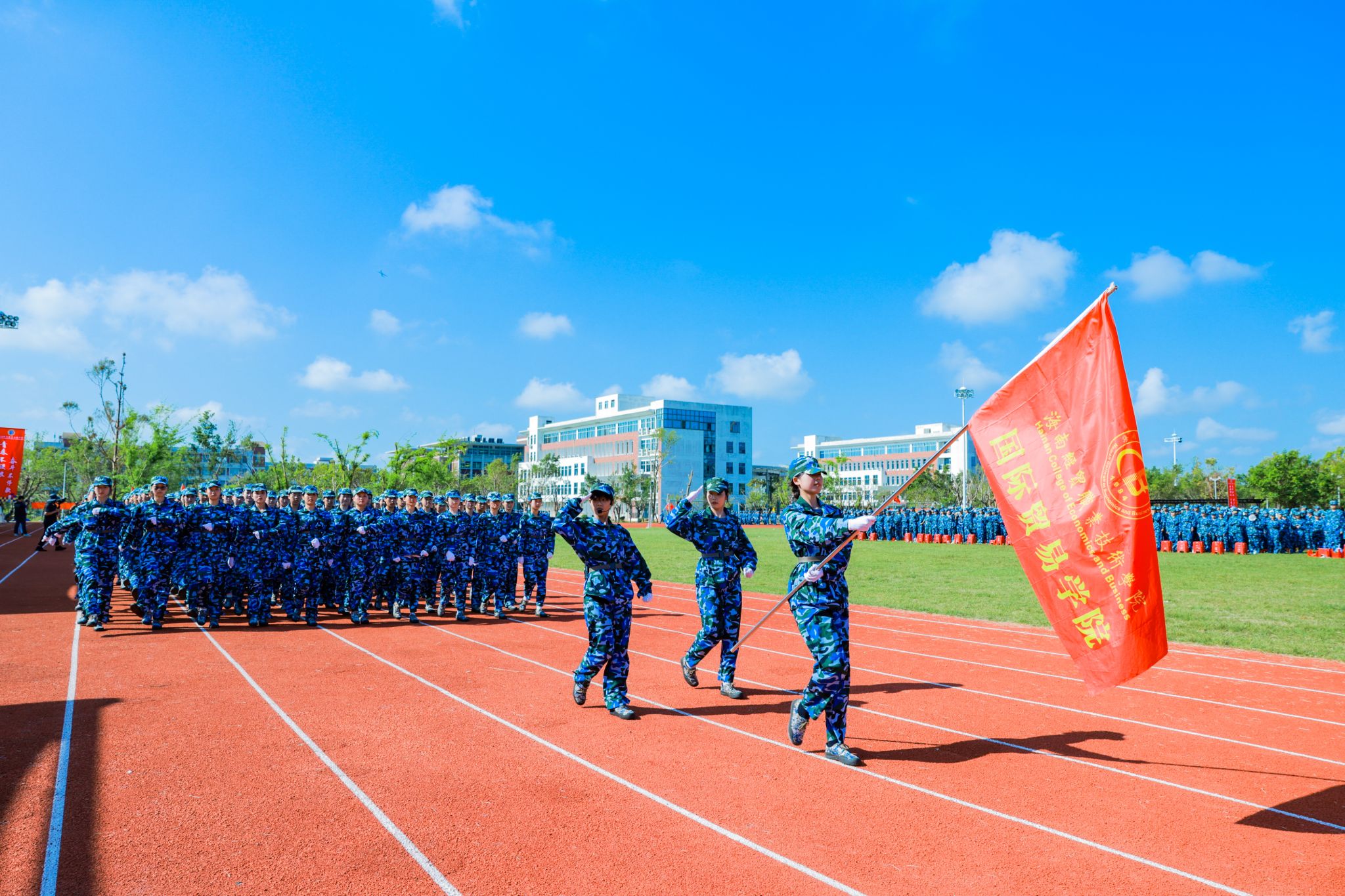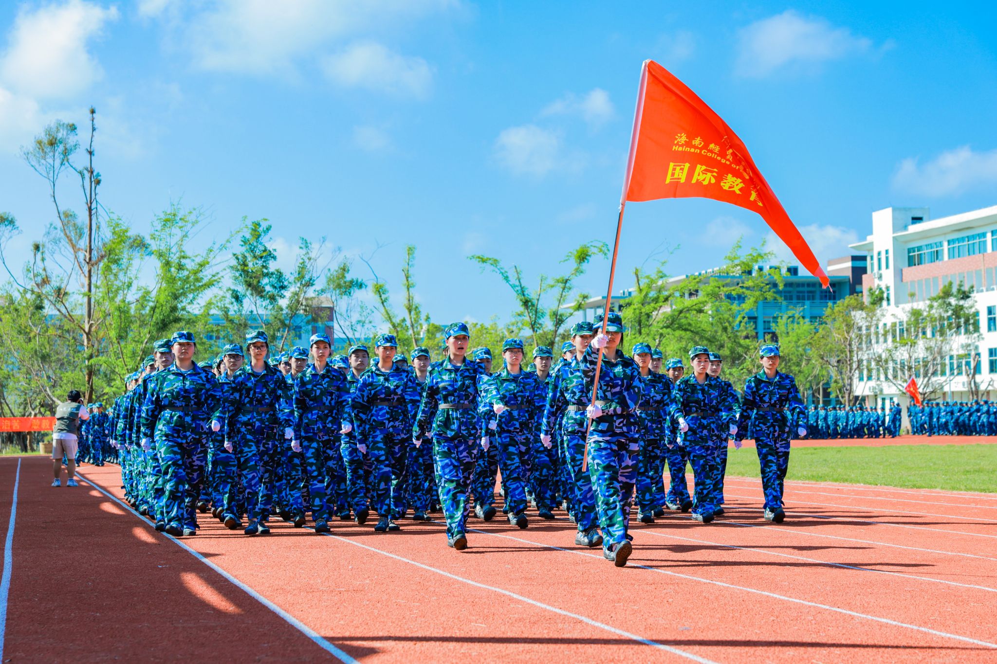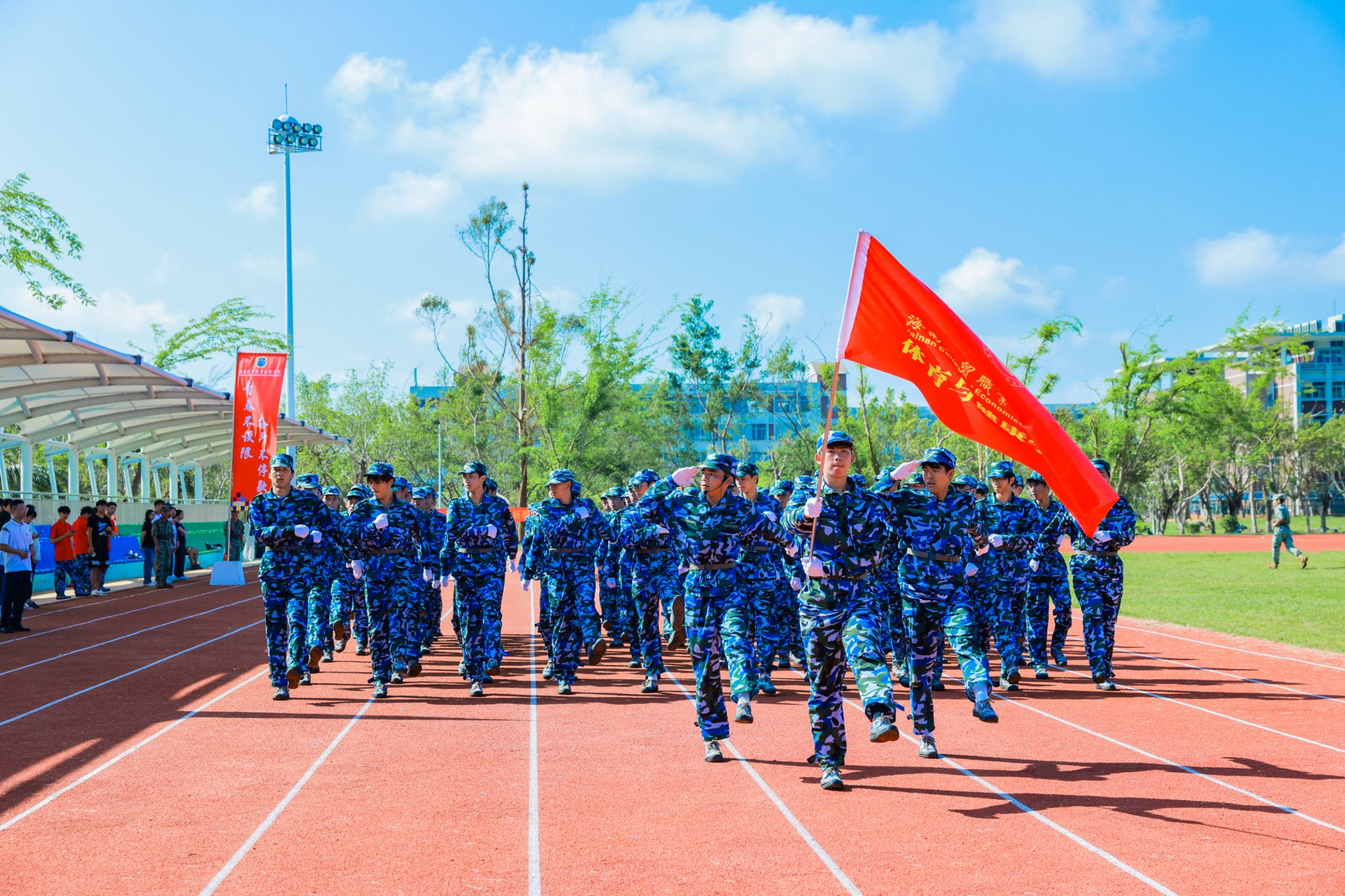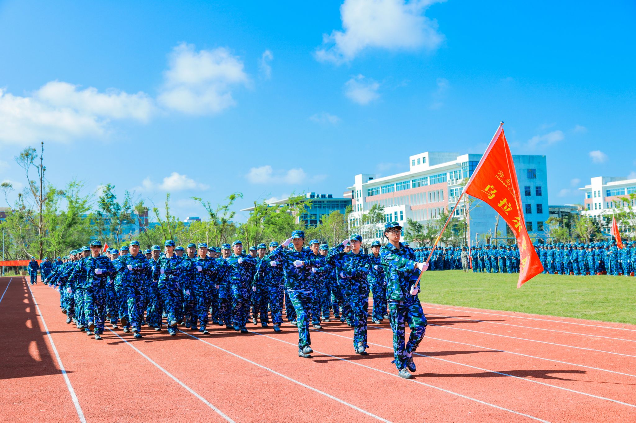 口号激昂,军歌嘹亮,回荡在操场的每一个角落。来自9个二级学院的新生代表方队英姿勃发、步履铿锵,依次昂首阔步经过主席台,充分展现了米兰学子充满活力的青春风采。在这一刻,他们以优异的表现,向全体师生和教官递交了一份满意的答卷。