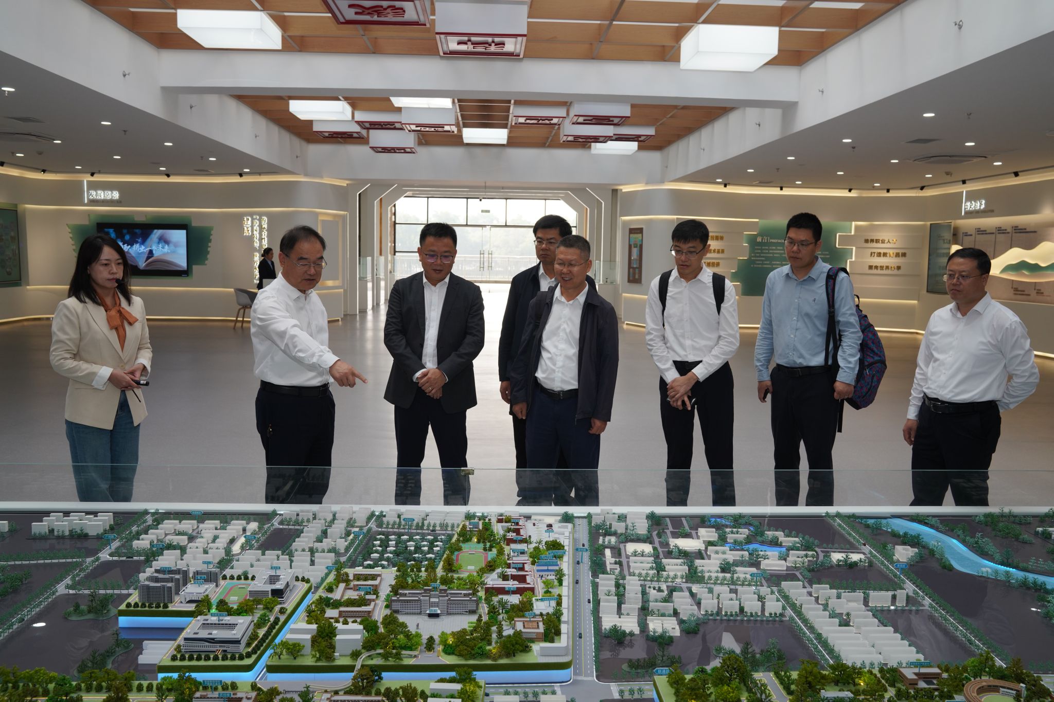 在刘伟的陪同下,王华一行参观了淄博职业技术学院校史馆、智能制造学院办学成果数字展厅和有关实验实训基地。