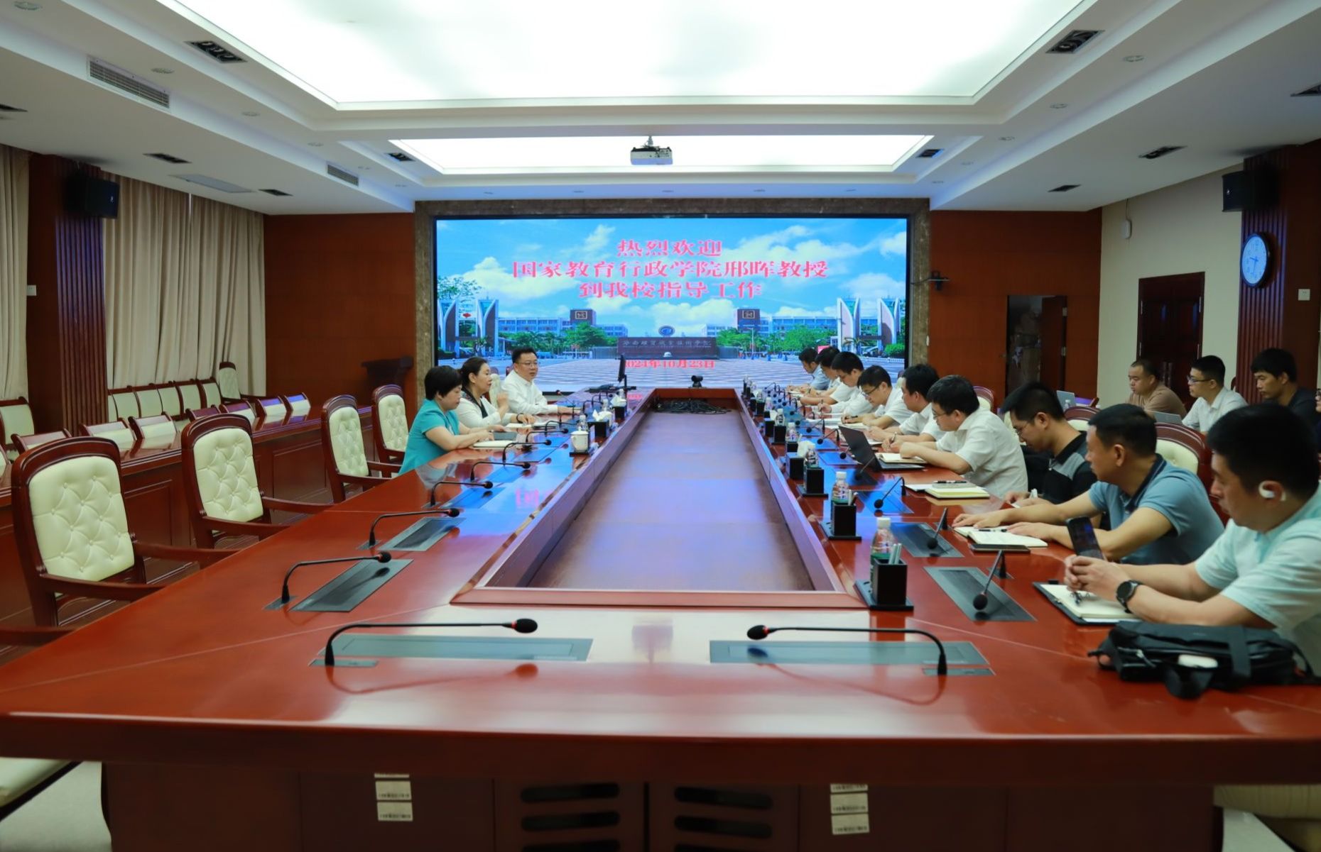 2024年10月23日,国家教育行政学院学术委员会主任、职业教育研究中心主任邢晖教授来到米兰milan官方网站,就学校“双高”建设等相关工作进行指导。学校党委书记王华,党委委员、副校长万力维出席座谈会。