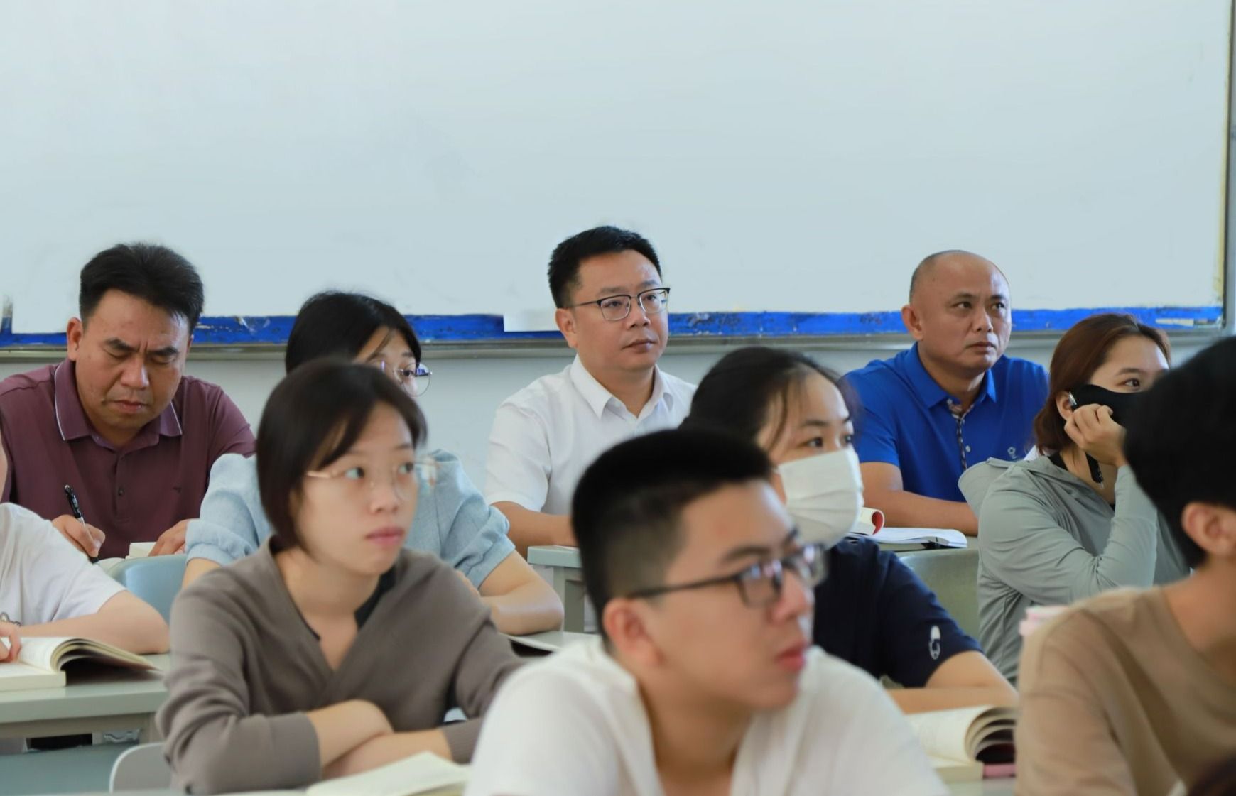 王华来到教室,听取了马克思主义学院教师孙雪丽讲授的“习近平新时代中国特色社会主义思想概论”课程。课堂上,王华边听边记,细心观察学生上课状态和课堂表现,关注教师教学过程和教学管理。课间,王华围绕课程大纲、教学内容、教学方法和教学实施等方面与授课教师进行交流。他说,思政课是落实立德树人的关键课程,思政课教师要在教学方法上下功夫,在课堂上要把握重点和难点,把要点讲清楚、讲明白,让学生听得懂、听进去,引导他们去思考、去实践。要加强课堂管理和教学改革创新,不断增强思政课的思想性、理论性和亲和力,把思政课打造成学生真心喜欢、终身受益的金课。