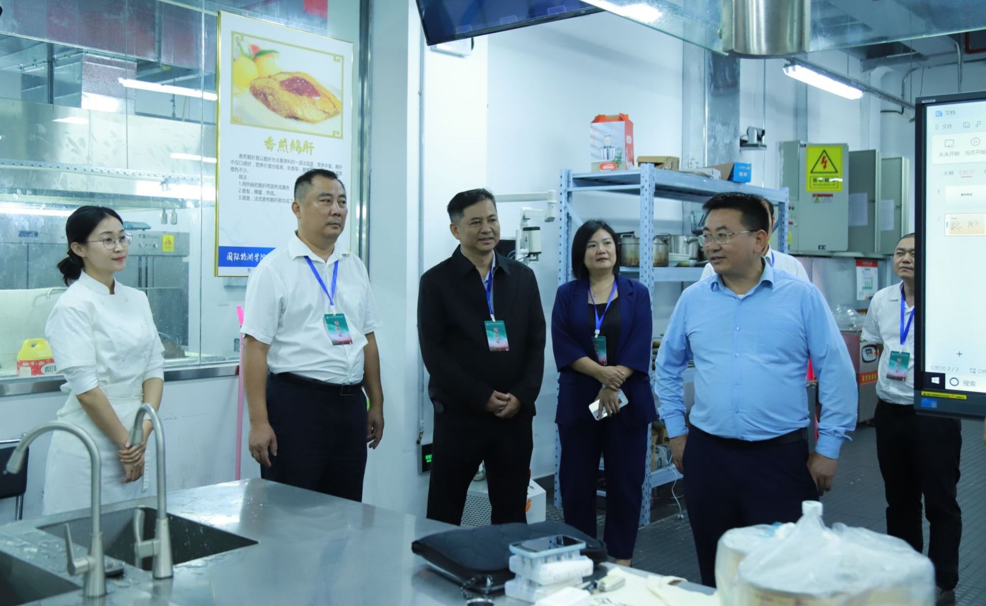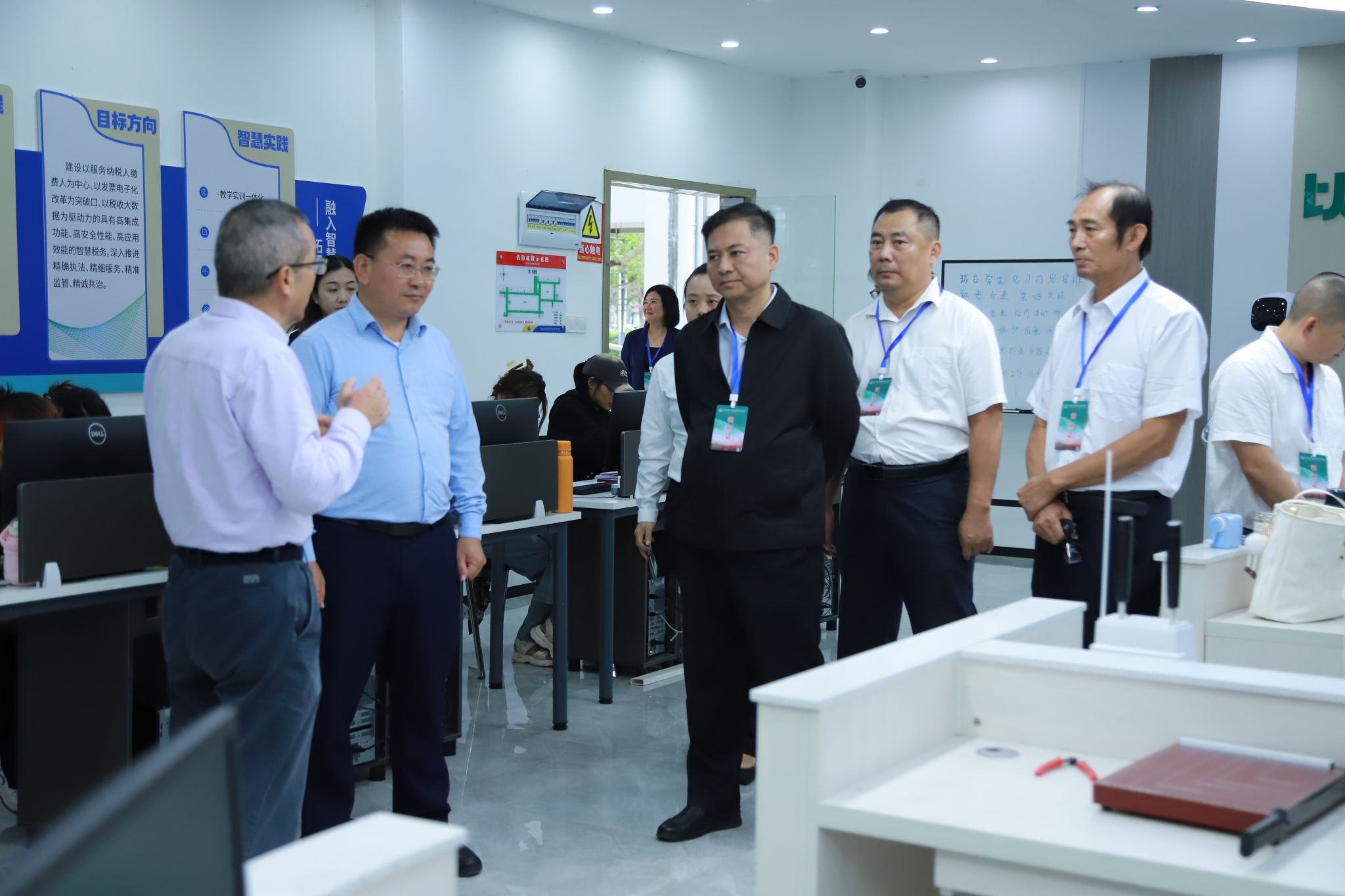 崔昌华陪同莫文基一行参观校园,先后来到数智财务产教融合实践基地、汽车检测与维修实训中心、新一代信息技术ICT产教融合基地和智慧旅游产教融合实训基地,介绍实训室建设、产教融合、校企合作、人才培养等方面情况。