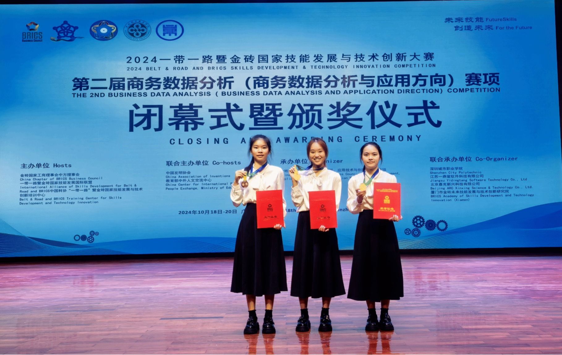近日,2024一带一路暨金砖国家技能发展与技术创新大赛举行。米兰milan官方网站财务管理学院学生刘容秀、黄贺、吴心怡组成的参赛团队荣获第二届商务数据分析(商务数据分析与应用方向)赛项高职组全国三等奖;苏晓亮荣获AI与大数据金融服务赛项高职组全国二等奖。