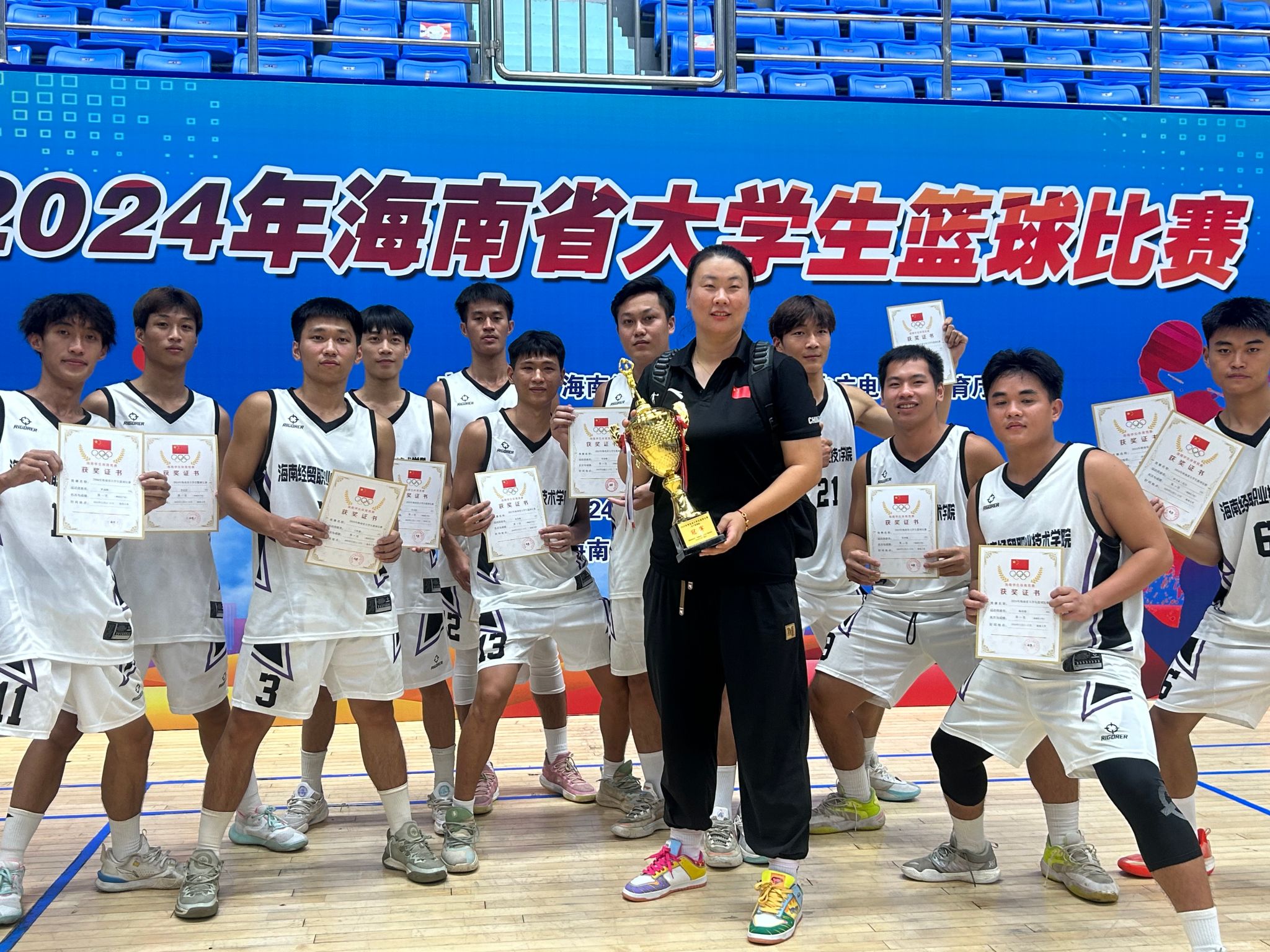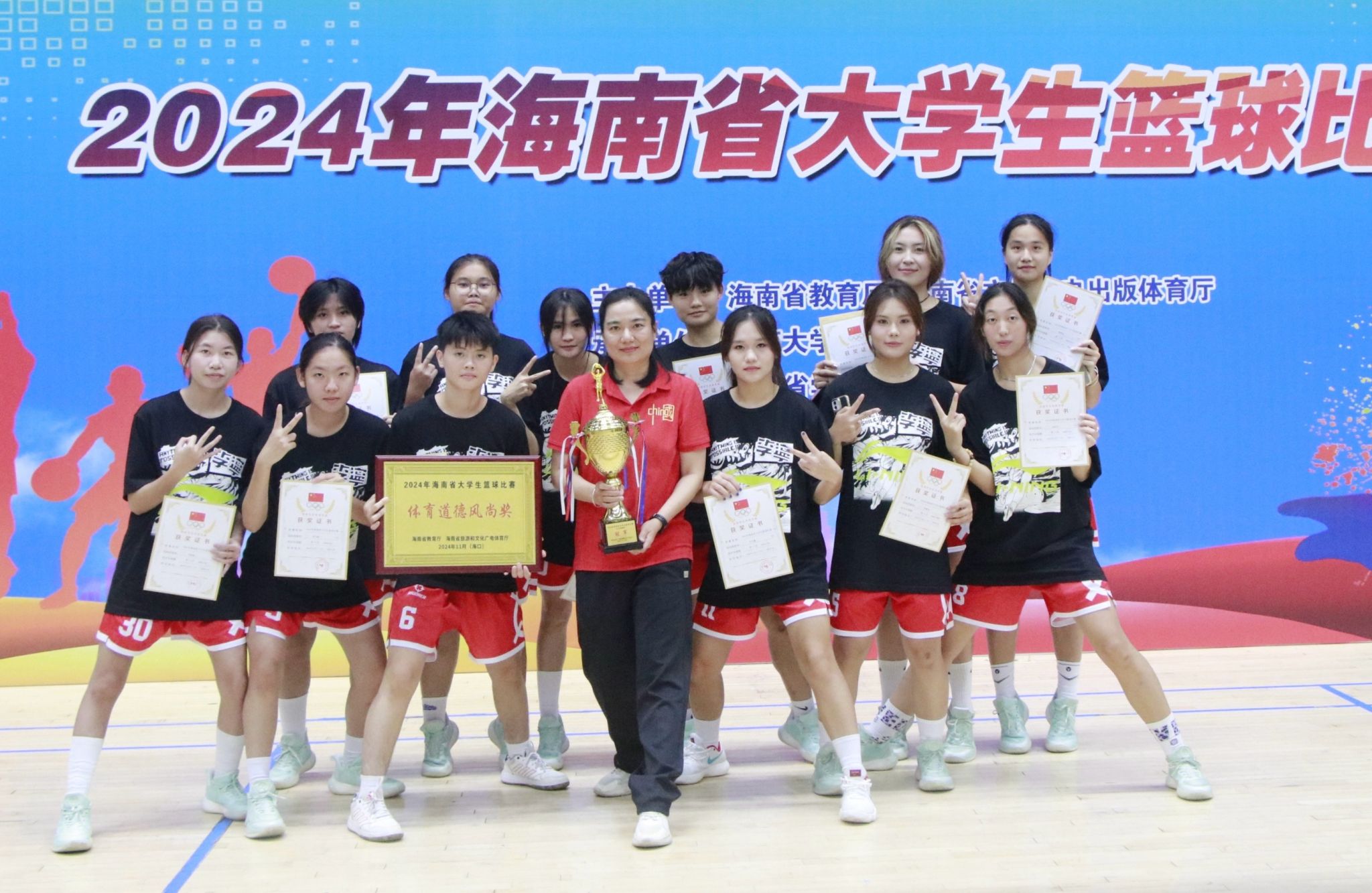 2024年海南省大学生篮球联赛于11月11日至18日在海口举行。米兰milan官方网站男子篮球队、女子篮球队凭借顽强的意志、过人的能力一路披荆斩棘,以全胜的战绩勇夺普通组双冠军,站上了本次比赛的最高领奖台。