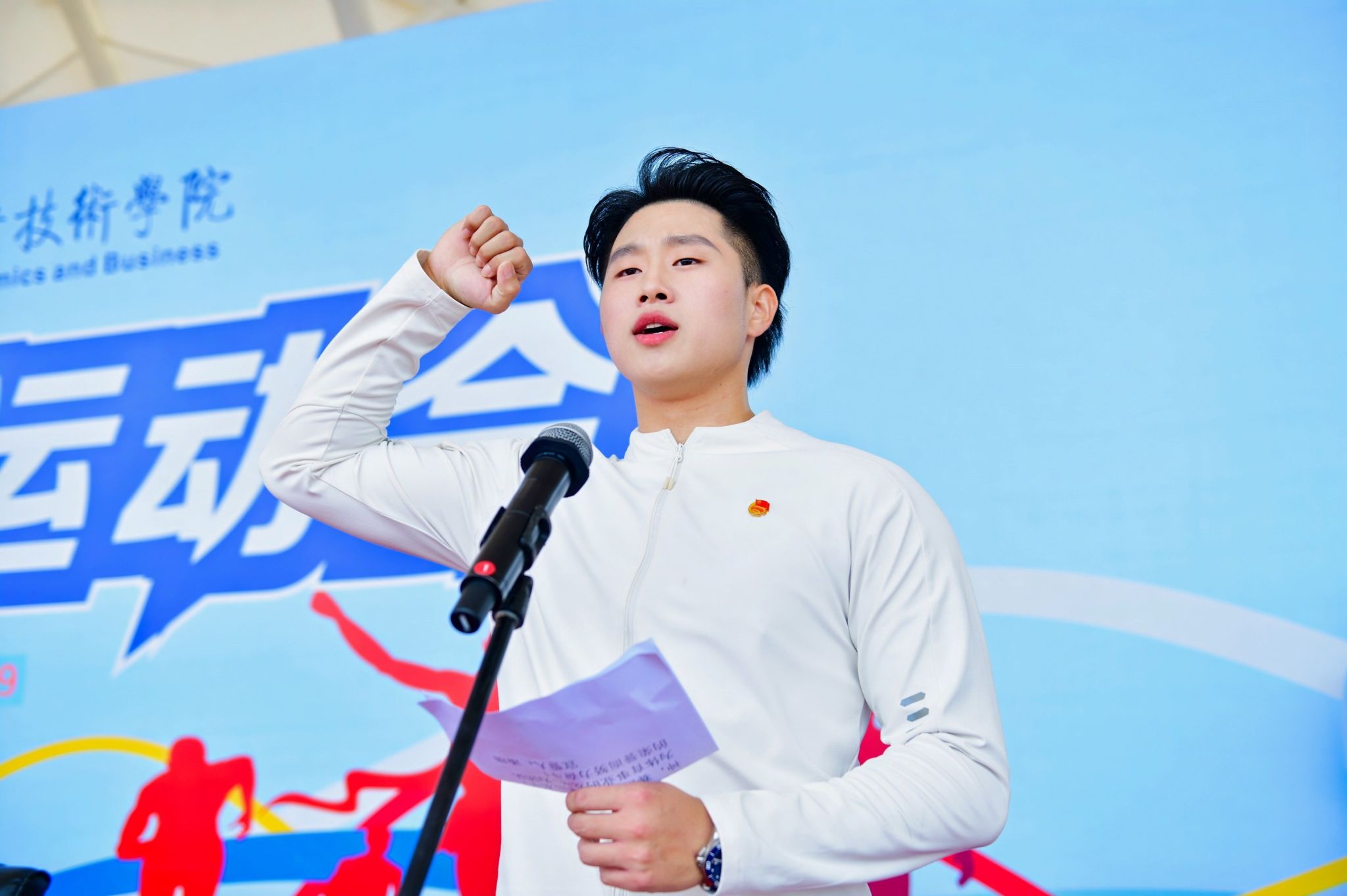 崔昌华代表学校向运动会的顺利召开表示热烈祝贺,向参加各项赛事的运动健儿们致以亲切的问候。他说,体育强则中国强,国运兴则体育兴,扎实做好大学生体育运动实践工作,是落实体育强国、健康中国战略的关键举措。校运会是学校的一项传统体育赛事,是丰富校园文化生活的重要载体。他希望米兰师生在运动会上投入饱满的态度和昂扬的斗志,赛出成绩、赛出水平、赛出风格,把体育场上顽强拼搏、挥汗如雨的模样转化为“我将无我、不负韶华”的拼搏之志;希望全体裁判员、工作人员公平裁判,把爱心献给师生,把责任心献给大会,以一流的竞赛组织和服务保障,把本届运动会办成标准高、效果好、影响深的体育盛会,充分展现米兰师生风采,取得运动成绩和精神文明的双丰收。
