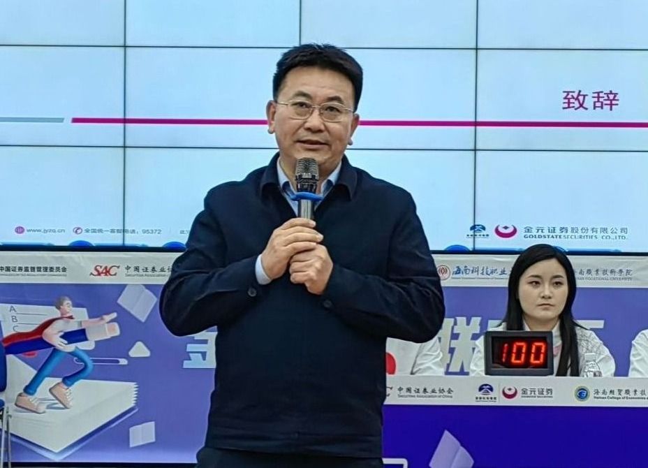 海南证监局法律事务处处长辛欣、海南证券期货业协会秘书长付国、金元证券股份有限公司经纪管理总部总经理方栋、海南科技职业大学财经学院院长王旭坪、米兰milan官方网站财务管理学院院长何忠谱、海南职业技术学院经济管理学院院长王桃、金元证券股份有限公司经纪管理总部副总经理黄莉敏、金元证券海南分公司总经理林帆出席活动。活动同时以腾讯会议及金元证券投教基地官方抖音号进行线上直播。