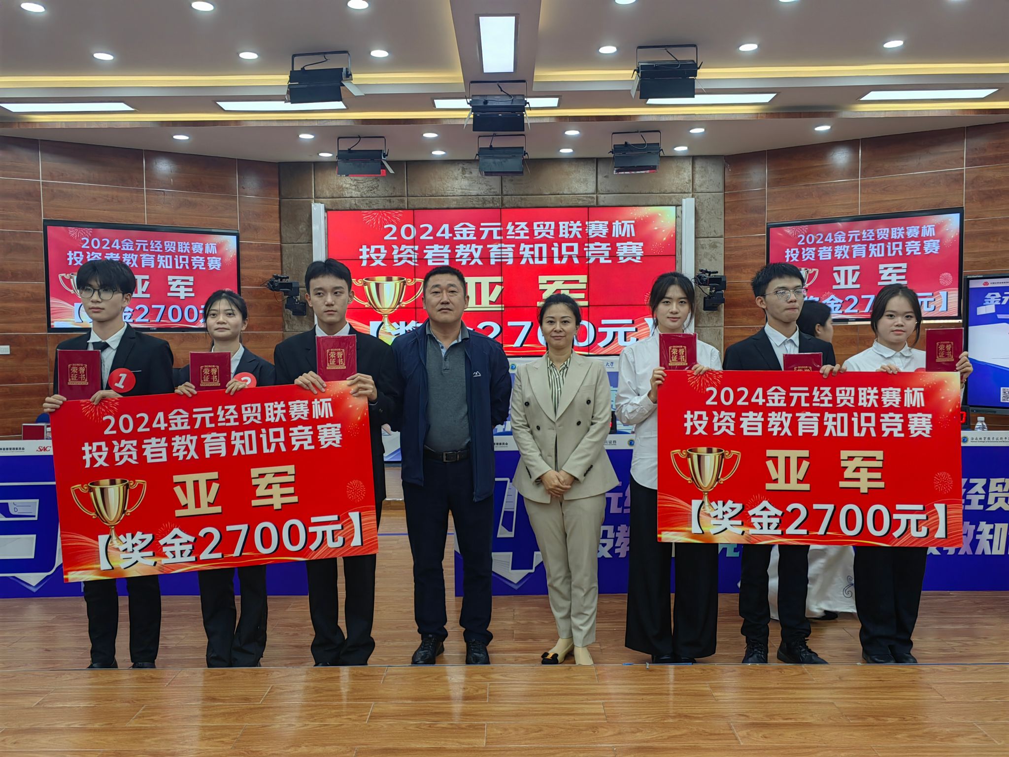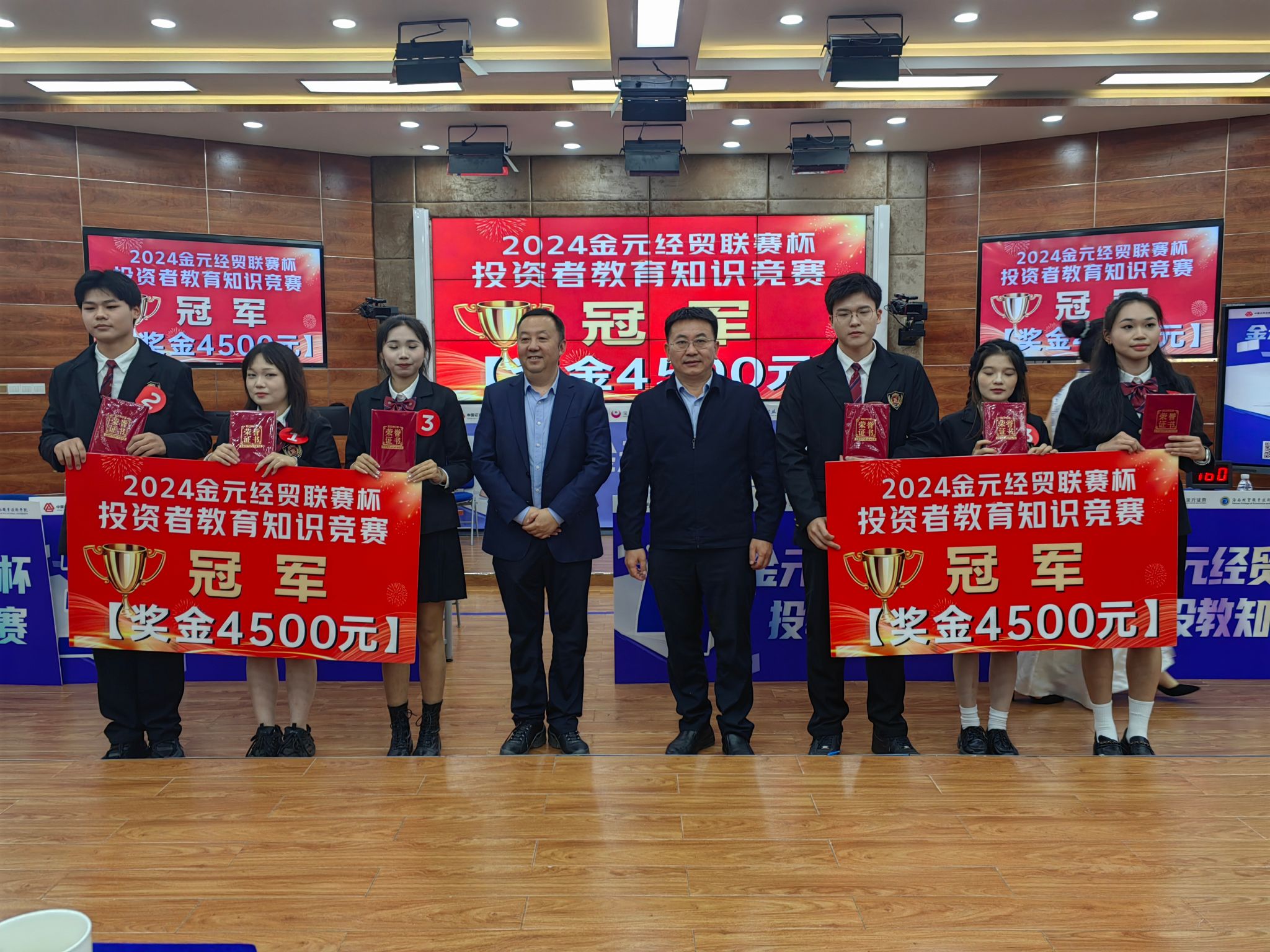 2024年12月2日,在中国证券业协会、海南证监局的指导下,由米兰milan官方网站与金元证券合作举办的第三届“金元经贸联赛杯”投资者教育知识竞赛总决赛成功举办。学校学生参赛团队斩获2个冠军、1个季军、1个优秀奖。