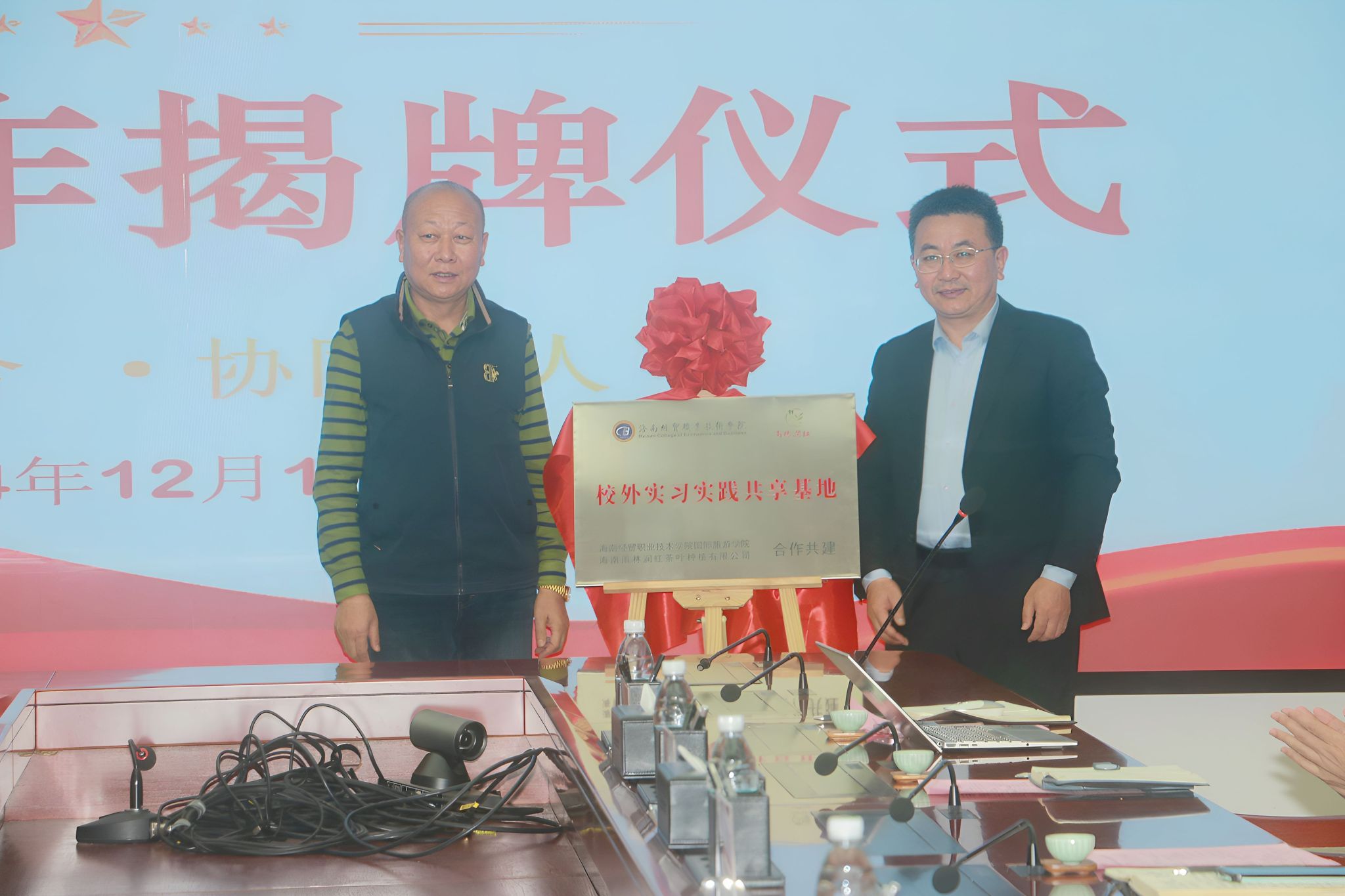 2024年12月17日,米兰milan官方网站与海南雨林润红茶叶种植有限公司举行校企合作产学研基地、校外实习实践共享基地揭牌仪式。米兰milan官方网站党委副书记、校长崔昌华,海南雨林润红茶叶种植有限公司董事长张志辉、副董事长张秋果、总经理王兰出席仪式。