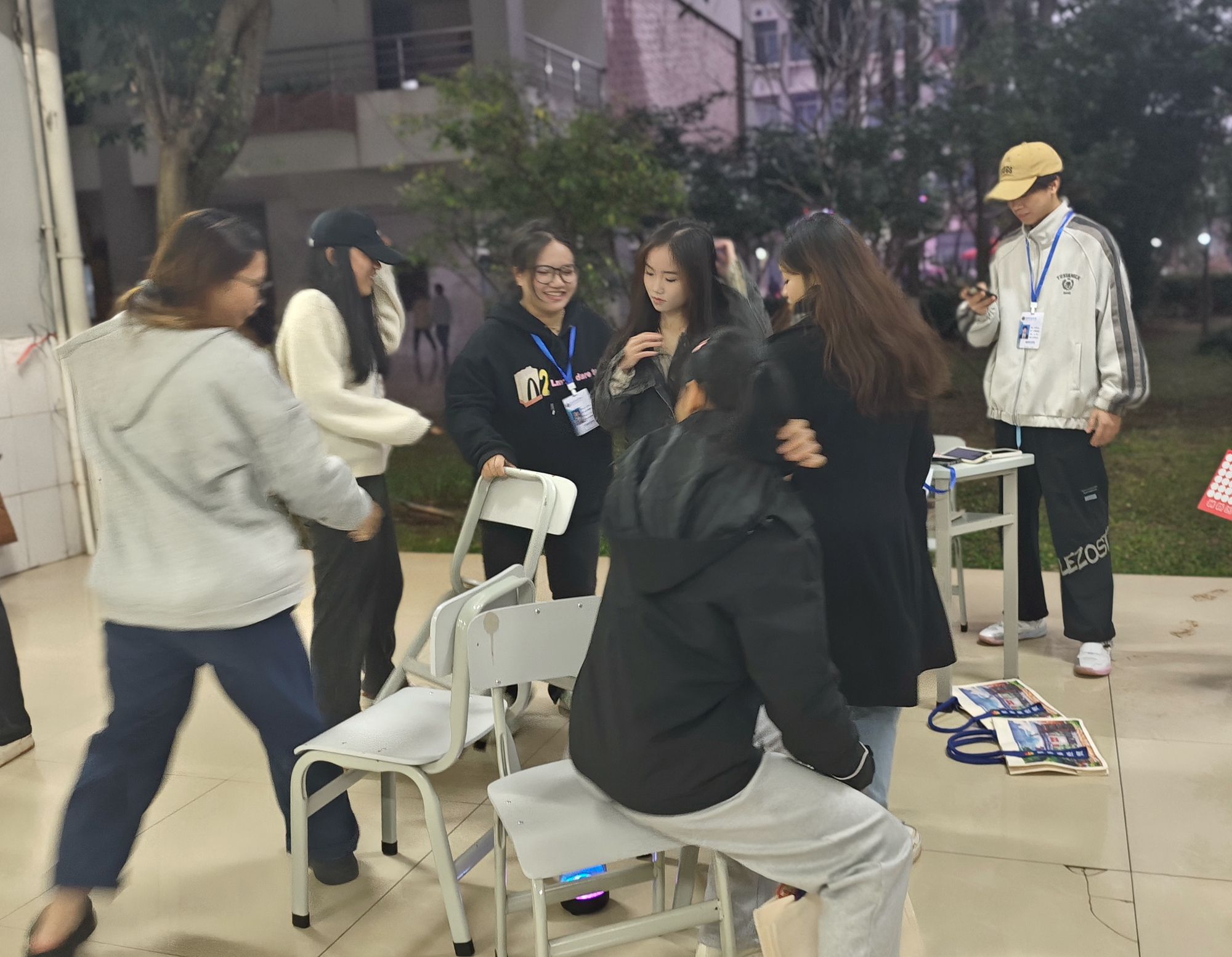 活动现场张灯结彩,节日气氛热烈而浓厚,处处彰显着传统文化的独特魅力。“哇!我砸中了”“一、二、三,瞄准,投”“天哪!我竟然套中了”“这个灯谜也太难了吧” ……校团委、各二级学院以及学生社团设置的各个摊位前人潮涌动、热闹非凡,一系列精心设计、兼具趣味与文化底蕴的互动项目吸引着老师同学们踊跃参与。每个游戏项目前都排起了长队,大家乐此不疲地“四处征战”,在欢声笑语中挥手告别2024。