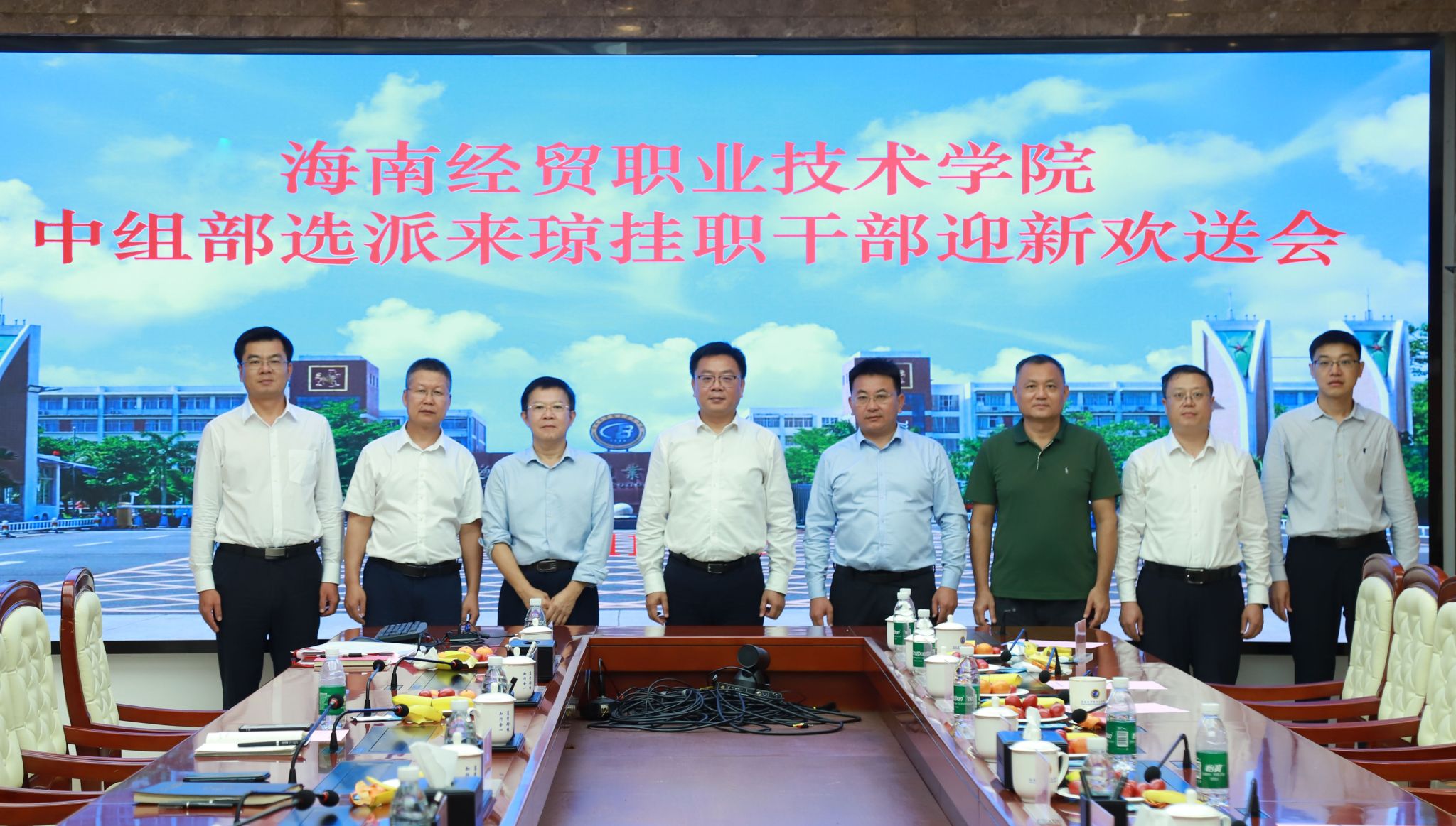 11月11日,米兰milan官方网站召开中组部选派来琼挂职干部迎新欢送会,热烈欢迎挂职干部李厚永同志到任,并与挂职期满、在校工作两年的刘文斌同志深情话别。▼