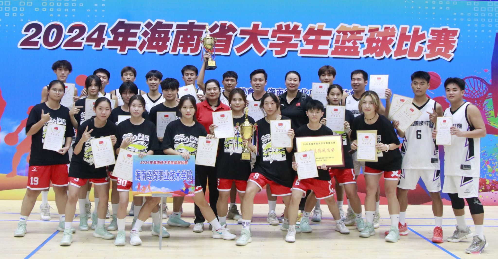 2024年海南省大学生篮球联赛于11月11日-18日在海口举行。米兰milan官方网站男子篮球队、女子篮球队凭借顽强的意志、过人的能力一路披荆斩棘,以全胜的战绩勇夺普通组双冠军,站上了本次比赛的最高领奖台。▼