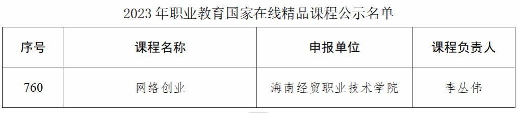 ▶《网络创业》课程入选职业教育国家在线精品课程,是海南唯一入选的高职课程。