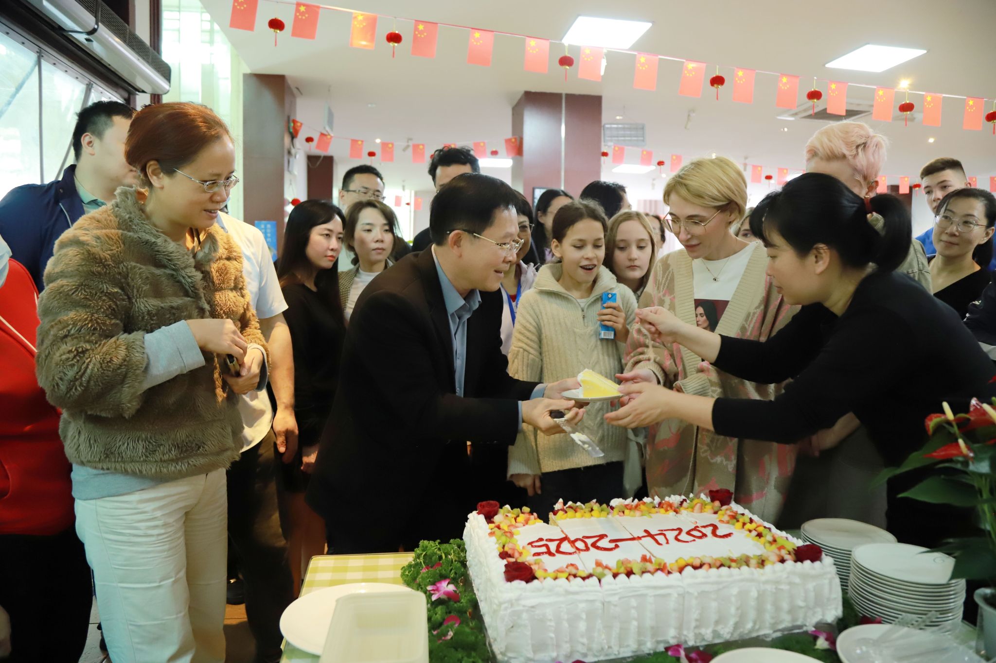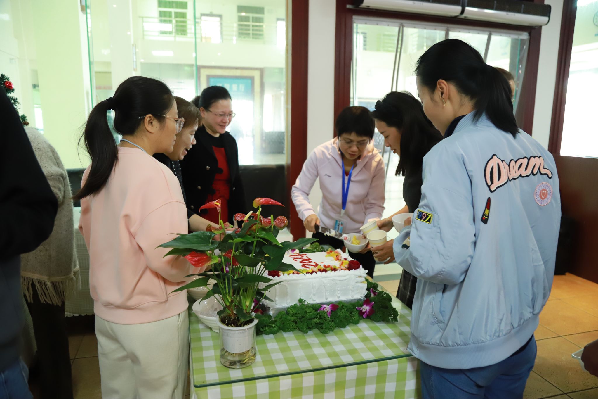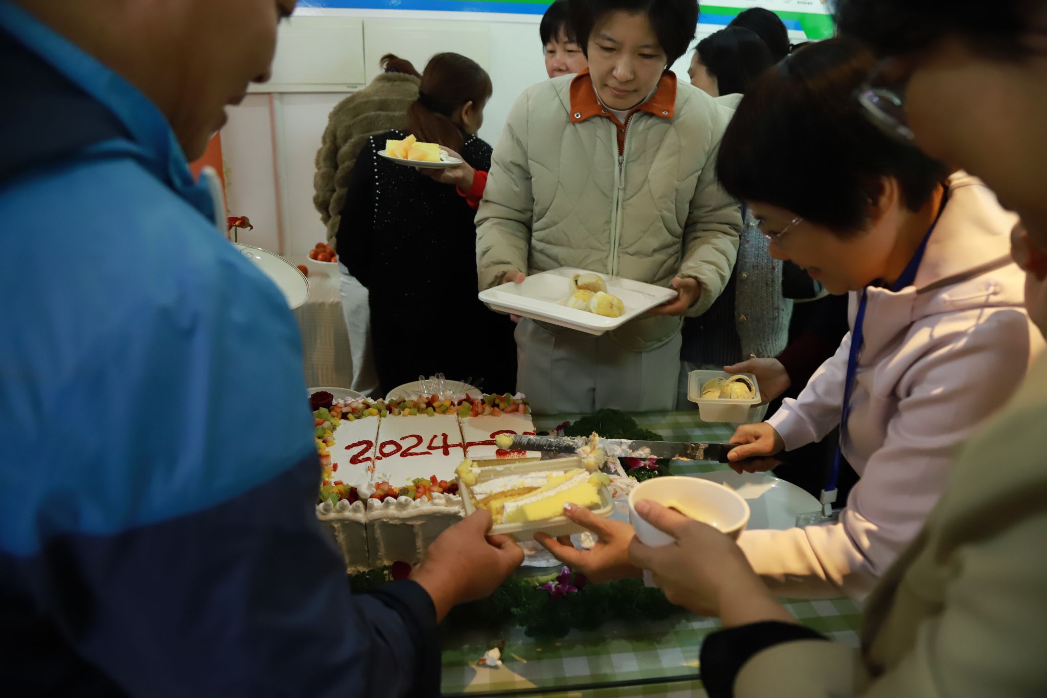 学校党委委员、副校长、工会主席陈修焕代表学校对全体教职工致以诚挚的节日问候,感谢大家在过去一年对学校工作的大力支持、辛勤付出和无私奉献。他说,在大家的共同努力下,学校正朝着本科职业大学的目标奋力前行。在新的一年里,学校将切实做好民生实事,不断提高服务水平,让师生员工共享学校改革发展成果,增强大家在学校工作和生活的满意度、幸福感和归属感。他为教职工们切分蛋糕,祝愿大家新的一年幸福快乐,工作顺利、身体健康,生活红红火火,工作蒸蒸日上。
