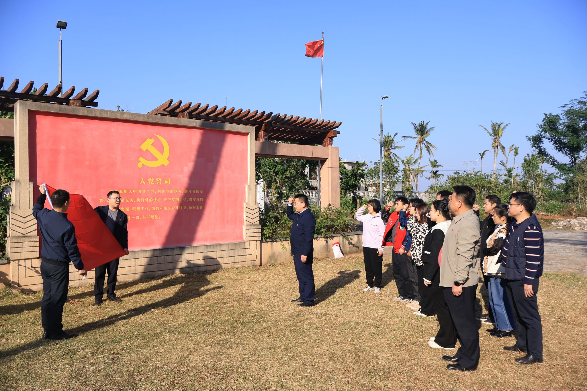 在崔昌华同志带领下,全体党员重温入党誓词。党员们面对党旗,庄严宣誓,表达了对党的忠诚和为党的事业奋斗终生的坚定决心。