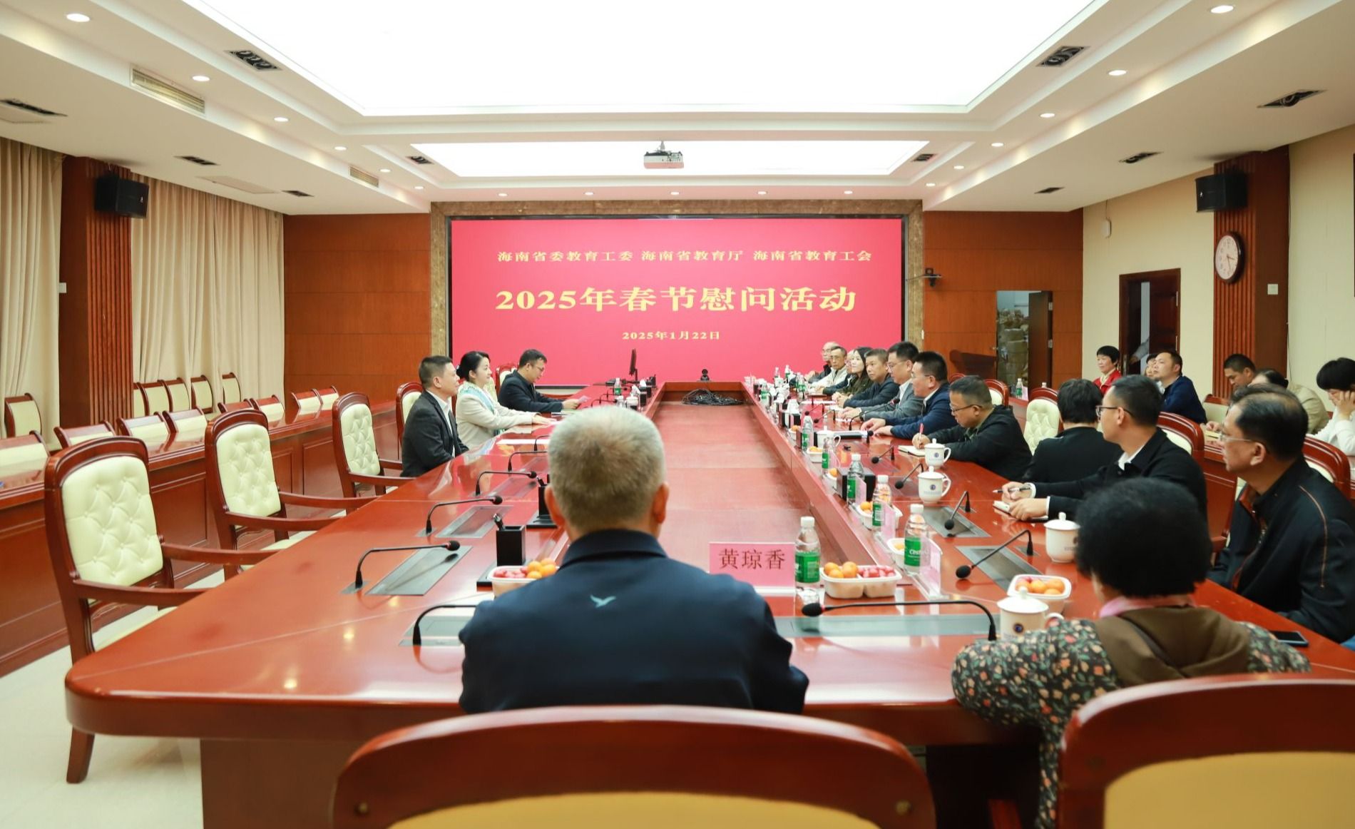 2025年1月22日,海南省人民政府教育总督学李渝凤、省教育厅教育督导局局长徐光锋、省教育厅高教处一级调研员刘世琼一行代表省委教育工委、省教育厅、省教育工会,看望慰问米兰milan官方网站基层党员和教职工。学校党委书记王华,党委副书记、校长崔昌华陪同慰问。