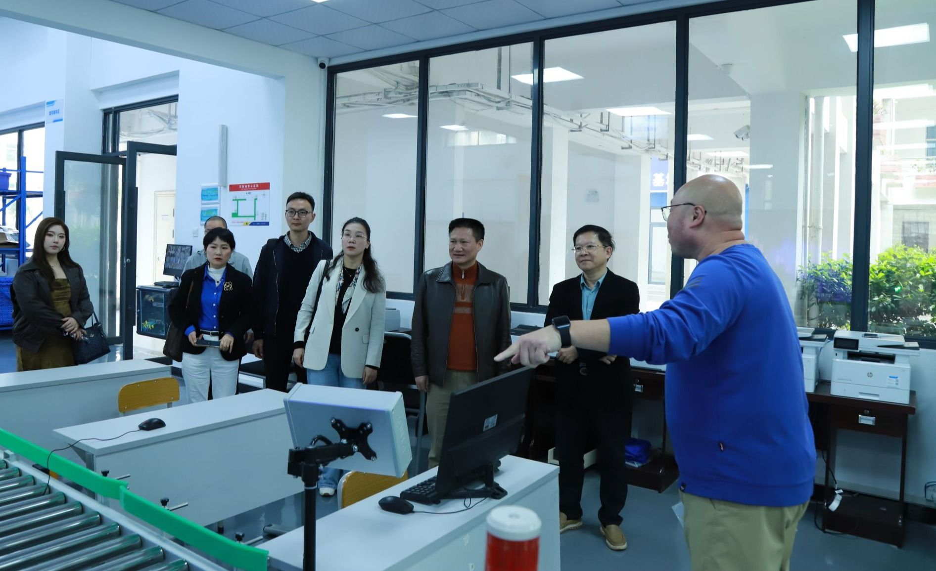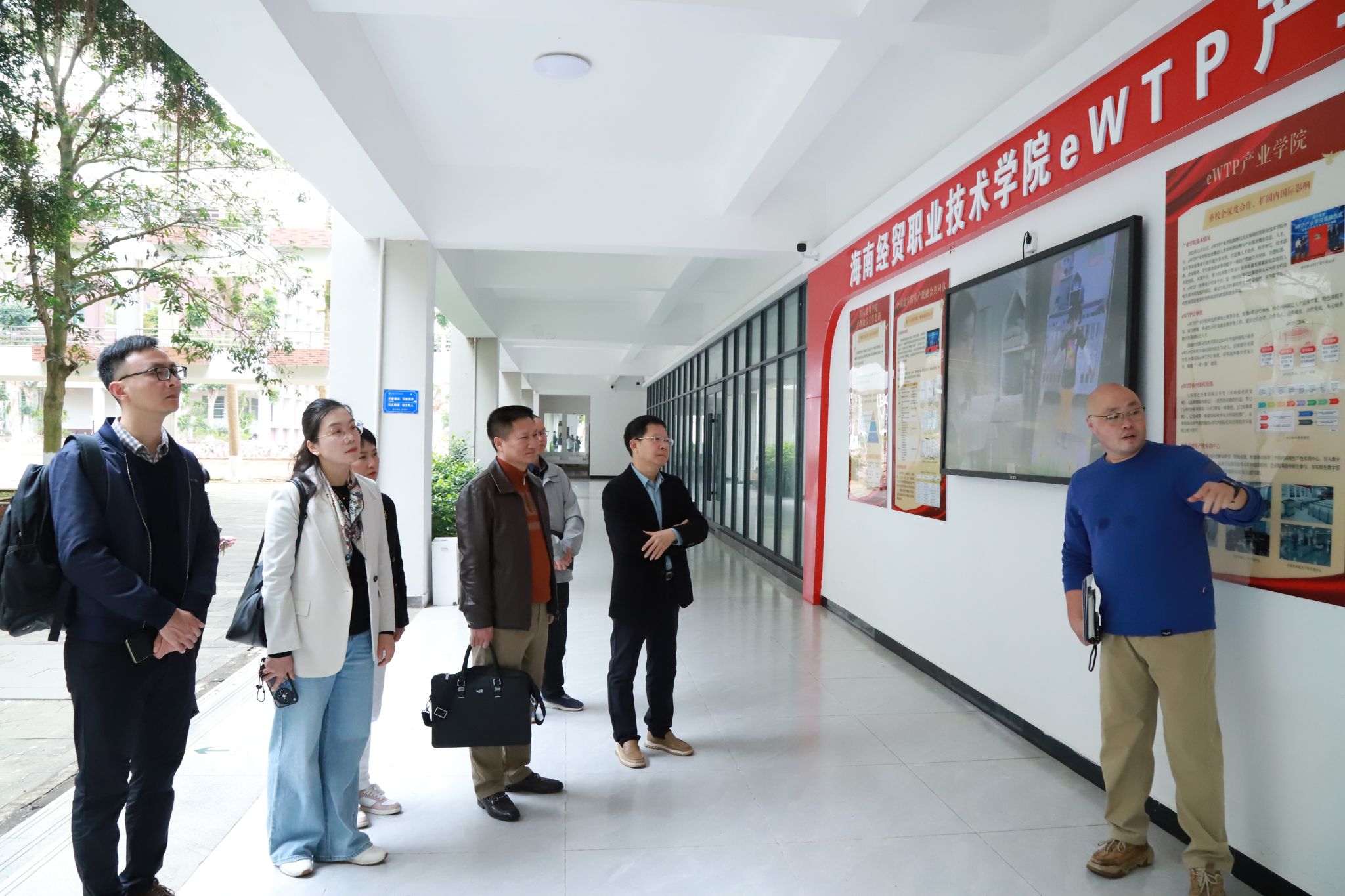 在陈修焕的陪同下,张斌文一行参观考察校园,在智慧供应链生产性实训中心和eWTP产业学院,听取有关专业建设情况介绍。