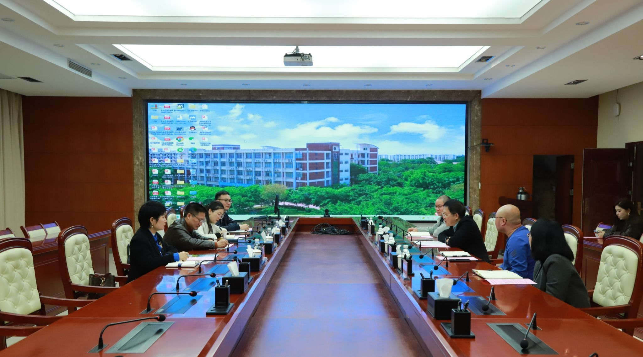 陈修焕对张斌文一行的到来表示热烈欢迎。他介绍了米兰办学历史、专业特色、招生规模、合作交流等方面情况。他说,米兰目前正处于推进学校高质量发展的关键时期,希望双方找准合作点,整合资源优势,相互学习借鉴办学治校经验,在专业建设、产教融合等方面加强合作,共同推动双方高质量发展。