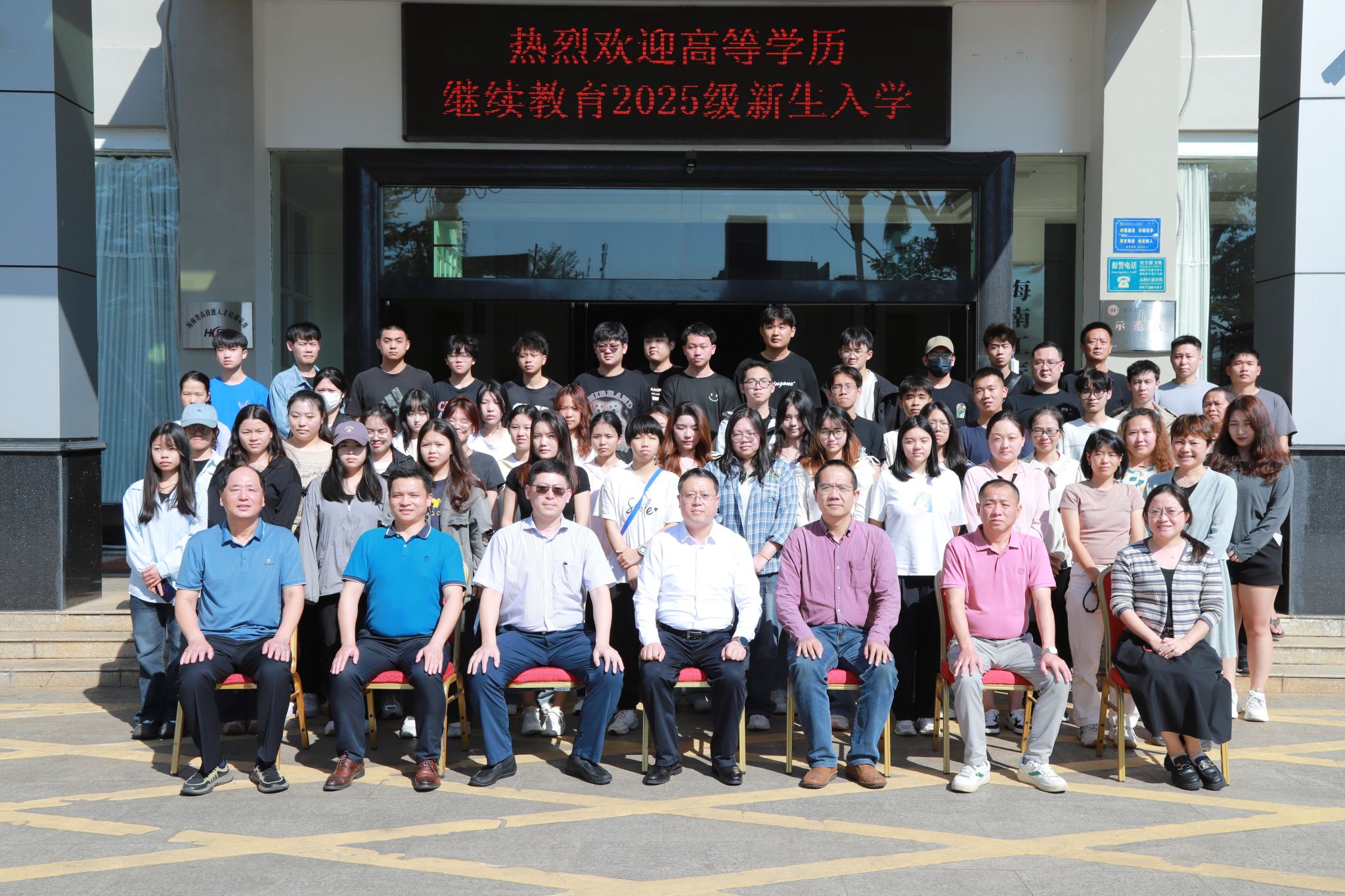 教务处、财务管理学院、国际旅游学院、继续教育学院有关负责人,校企合作单位负责人以及新生代表50余人参加开学典礼。