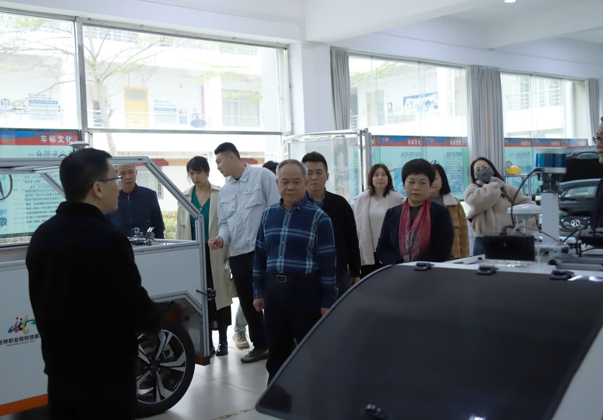 在万力维的陪同下,何理想一行参观校园,先后来到智慧旅游产教融合实训基地、汽车检测与维修实训中心、智慧财务产教融合实践基地和新一代信息技术ICT产教融合基地,听取有关负责人关于产教融合、人才培养等方面的情况介绍。