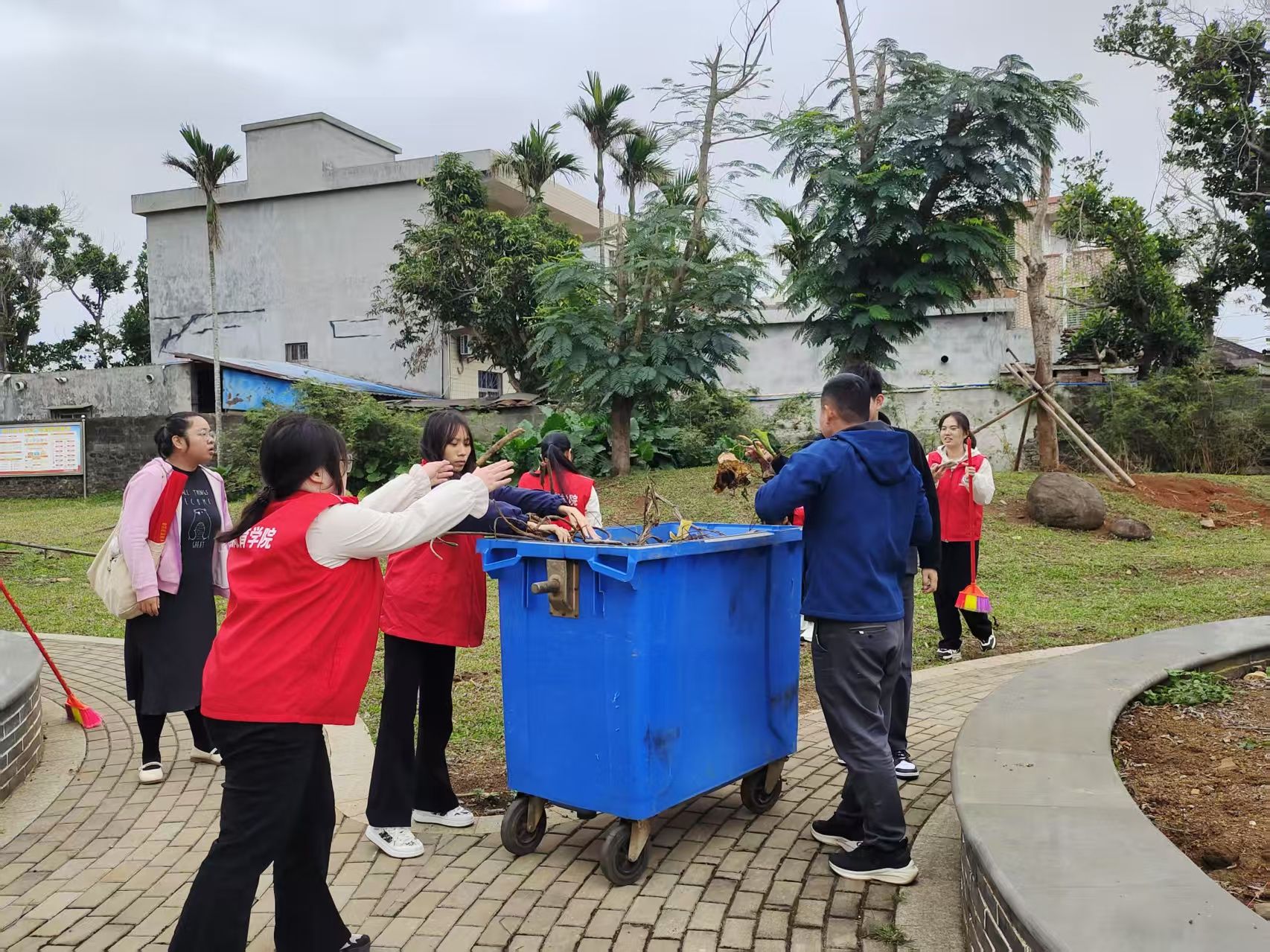 活动当日,学生党支部党员们身着志愿服务红马甲,在社区工作人员指导下分组开展环境整治。大家手持清洁工具,重点清理了社区干道、绿化带的垃圾杂物。原本散落的烟头、塑料袋、落叶枯枝等被逐一清扫归置,社区面貌焕然一新。