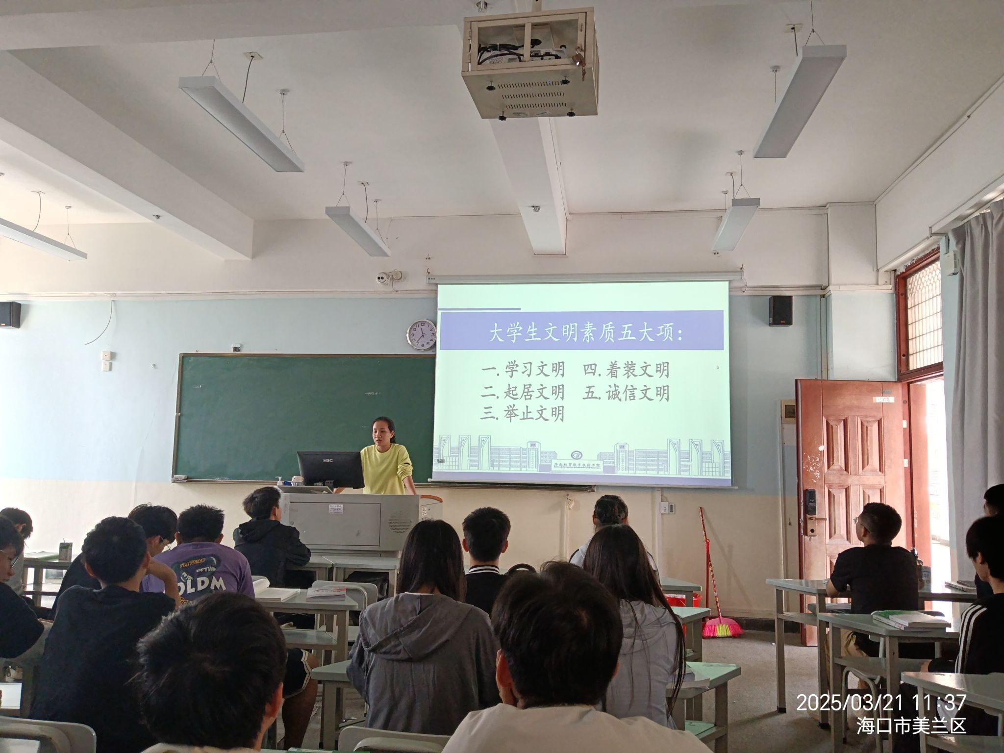 以各班级“课堂纪律、出勤率、抬头率”为重点,召开“文明班级建设”主题班会,推动班级文明、课堂文明意识内化于心、外化于行。组织各班级学生制定班级文明公约,通过学生之间的互助友爱,增强学生自律,切实培养学生良好品德和行为习惯。加大学院课堂巡查力度,整治逃课早退、穿拖鞋进教室、在教室吃早餐、教学楼内抽烟等不文明行为。通过创建文明班级,营造更加和谐、温馨的学习环境,从而促进学生全面发展。