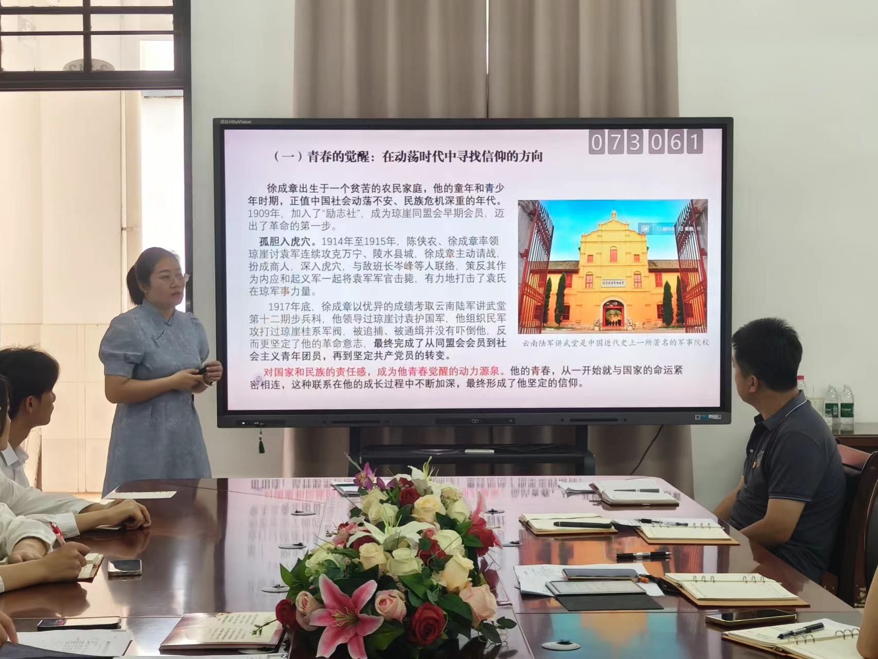 “我会以徐成章为榜样,以实际行动诠释对党的忠诚与信仰,努力在新征程上绽放属于自己的光彩,不负青春韶华与党员使命。”学生党员吴绍丹说,琼崖革命先烈徐成章的故事如同一束强光,照亮了自己对信仰力量的认知之路。学校发展历程里三次艰苦创业,彰显出的奋斗精神,也让学生党员们深刻领悟到信仰在成长中不可或缺。