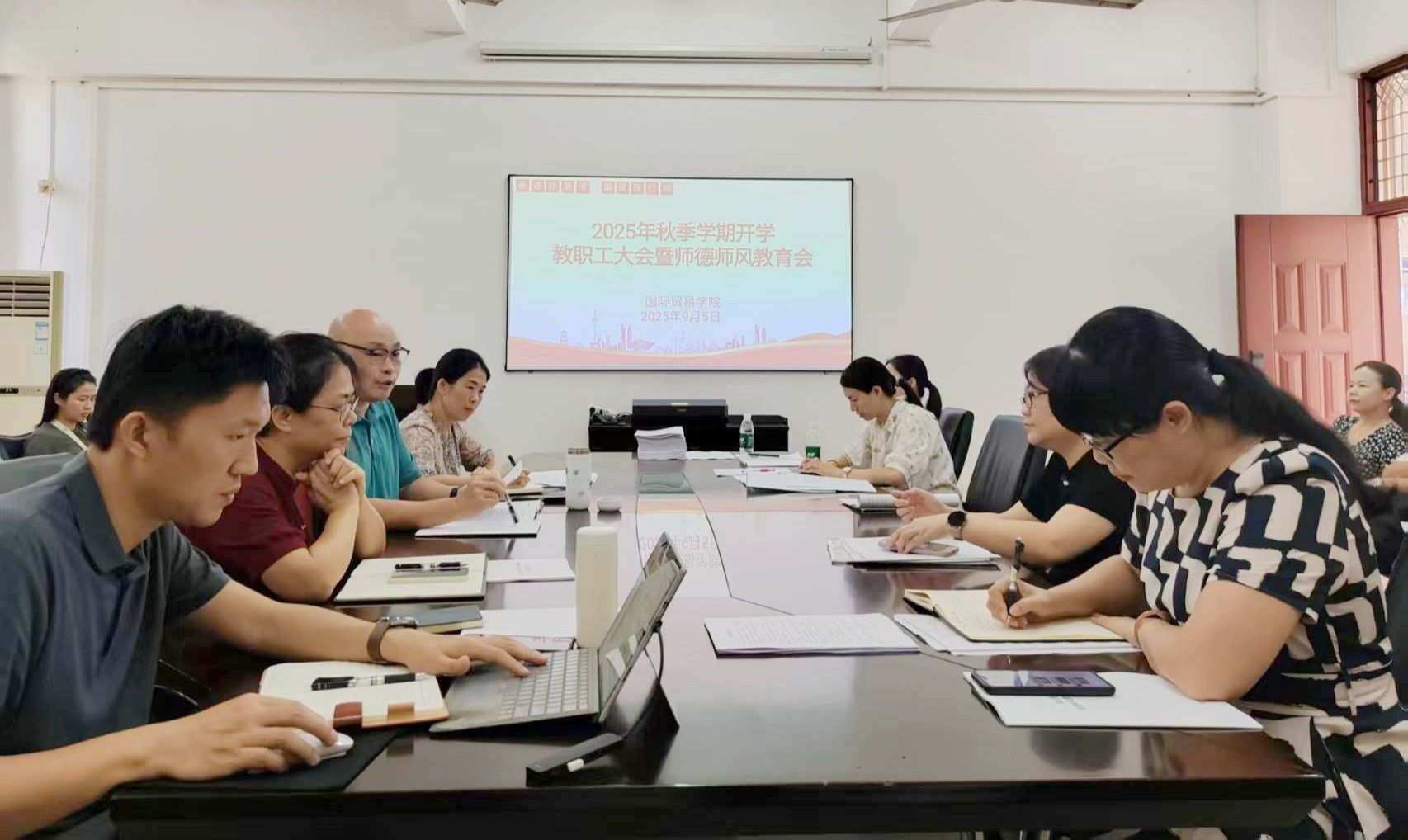 2025年9月5日,国际贸易学院召开2025年秋季学期开学教职工大会暨师德师风教育会,安排新学期重点工作,开展师德师风警示教育,进一步提升教职工思想政治素质和职业道德水平。