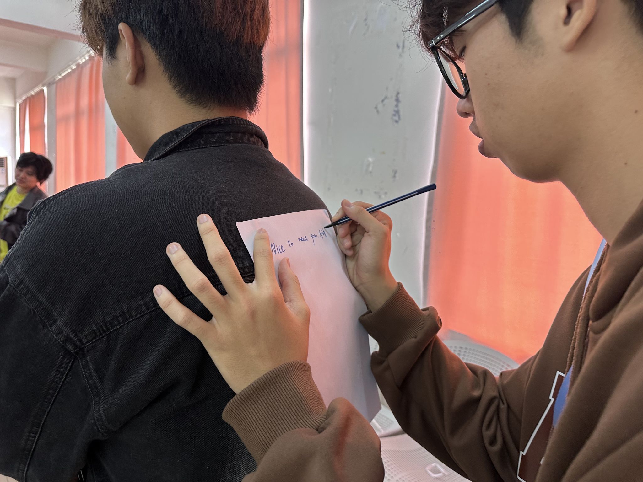 活动伊始,指导老师以一段富有画面感的“人生风暴”故事,带领同学们从“高中小船”驶入“米兰港湾”,迅速点燃了同学们的热情与期待。活动精心设置“岛屿风暴”“篝火相聚”“海岛物语”“同心寻宝”四个环节,循序渐进达成“破冰—熟识—协作—凝聚”的心理融入目标。“岛屿风暴” 环节以趣味换位游戏为载体,快速消融同学间的陌生感,打破初见的隔阂;“篝火相聚” 通过姓名与家乡接龙的温馨互动,让同学们在分享中深化了解、拉近距离,构筑起情谊纽带;“海岛物语” 以报纸建塔的创意挑战,充分激发大家的想象力与协作意识,在动手实践中悄然增进团队默契; “同心寻宝” 环节,借助后背匿名祝福的暖心形式,让真挚的期许与善意双向传递,将同窗情谊推向高潮。整场活动在欢声笑语与温情感动中圆满落幕,切实助力同学们筑牢集体认同感、凝聚班级向心力,也为未来的同窗时光奠定了深厚的情感基础。