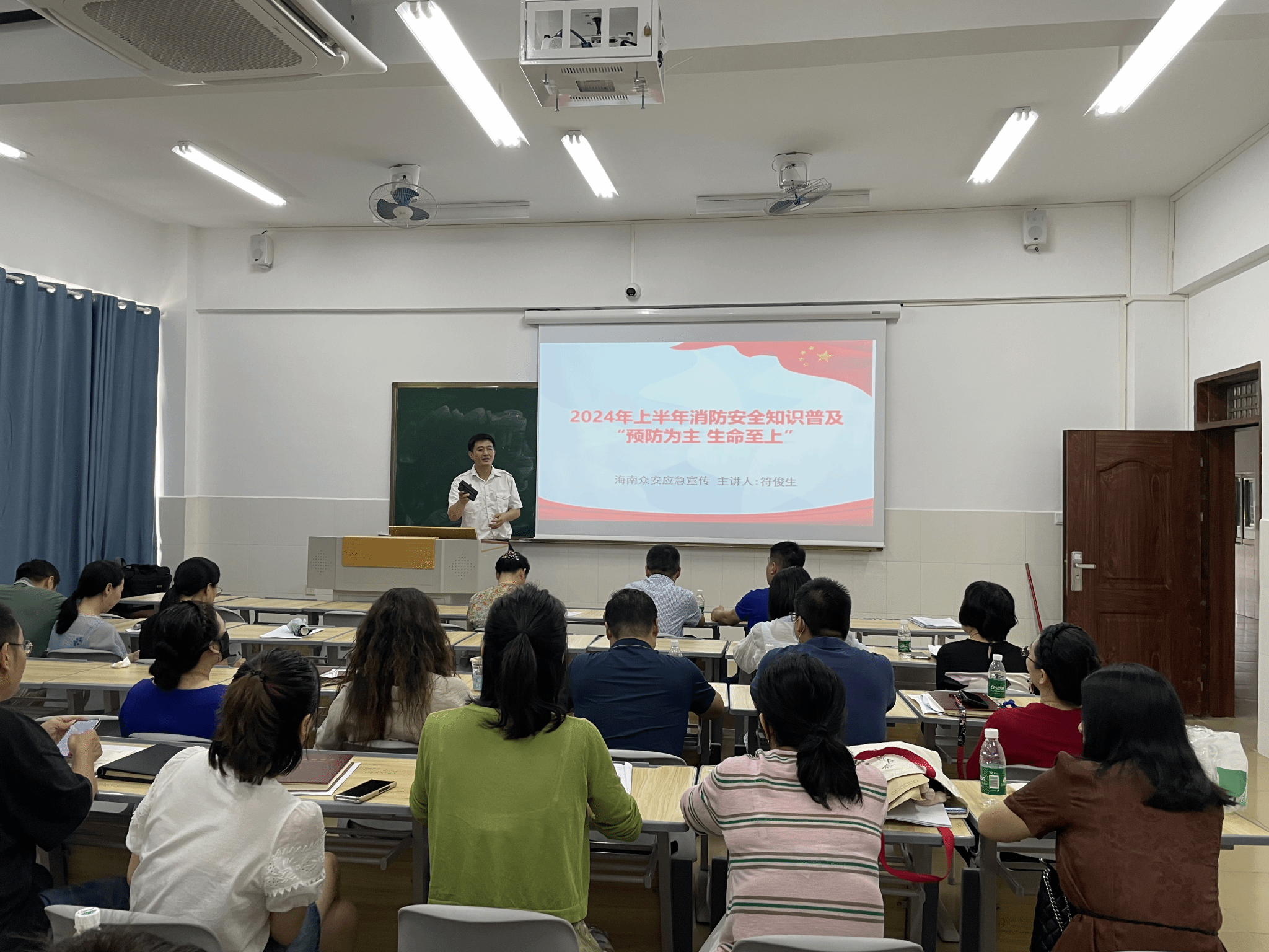 应急宣传教员符俊生受邀对教职工们进行消防知识培训。他围绕灭火毯、干粉灭火器、防毒面具的使用及操作方法进行讲解,结合实际案例开展警示教育,重点强调了常见的家庭起火、交通工具起火、宿舍起火的原因及造成的危害,提醒教职工们提高消防意识,防患于未然。