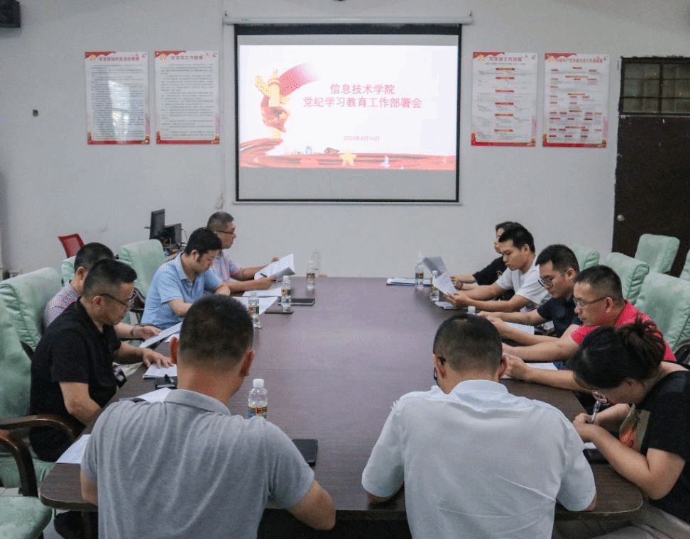 信息技术学院党总支于4月15日召开党纪学习教育部署会,要求全体党员进一步严明政治纪律和政治规矩,时刻保持清醒头脑,做到心中有党、心中有民、心中有责、心中有戒。教工党支部和学生党支部贯彻落实会议和有关文件精神,分别于4月23日和24日开展集中学习,学深悟透习近平总书记关于党纪学习教育的重要讲话和重要指示精神,原汁原味、逐字逐句学习《条例》。
