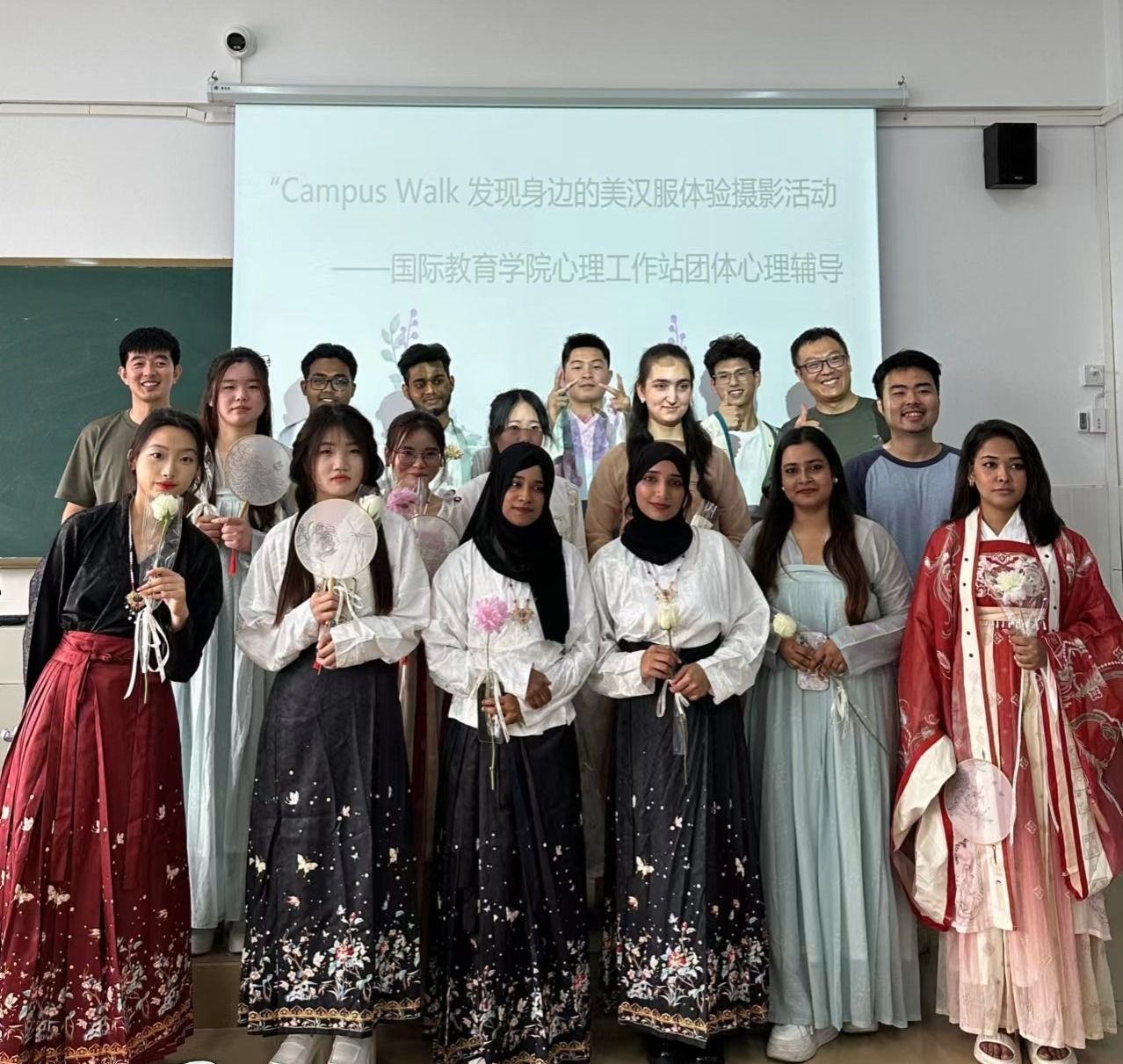 近日,国际教育学院暖愈青心心理工作站在大学生文化公园举办“‘Campus Walk’发现身边的美暨汉服体验”摄影活动,帮助同学们发现和欣赏身边的校园美景,减轻心理焦虑、舒缓压力,感受大学生活的纯粹与美好,促进中外学生的友好交流。