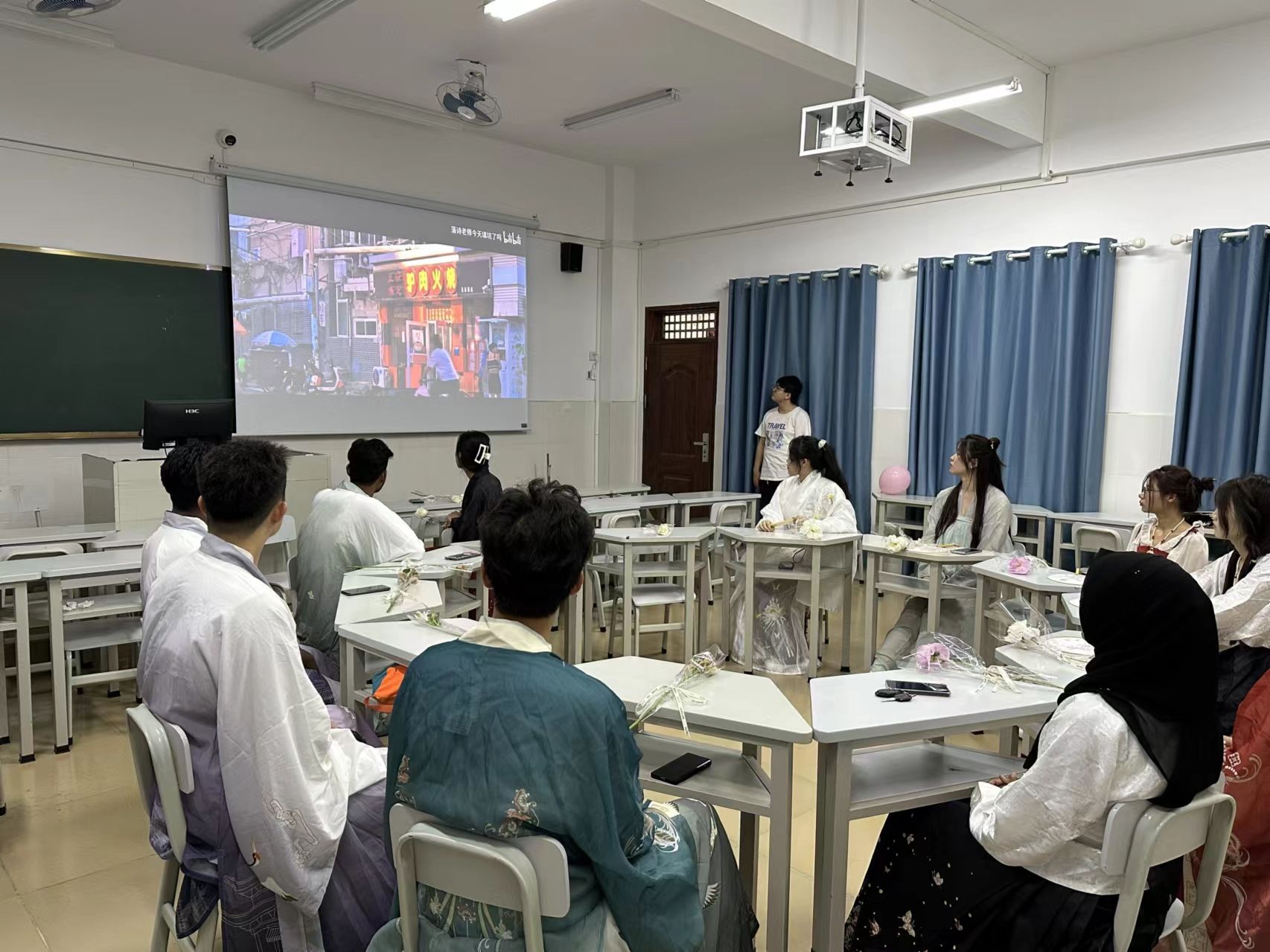 学生们身着汉服,手持鲜花,漫步在校园的林荫小道上。汉服的华美与鲜花的娇艳交相辉映,形成了一道靓丽的风景线。在欣赏美景的同时,学生们也不忘拍照打卡,记录下这美好的瞬间。他们或三五成群,或两两相依,用镜头定格下青春的风采。通过这次活动,学生们不仅增进了对中国优秀传统文化的了解,更在交流互动中结下了深厚的友谊。他们用鲜花传递着温情,用汉服承载着文化,用照片记录着青春。