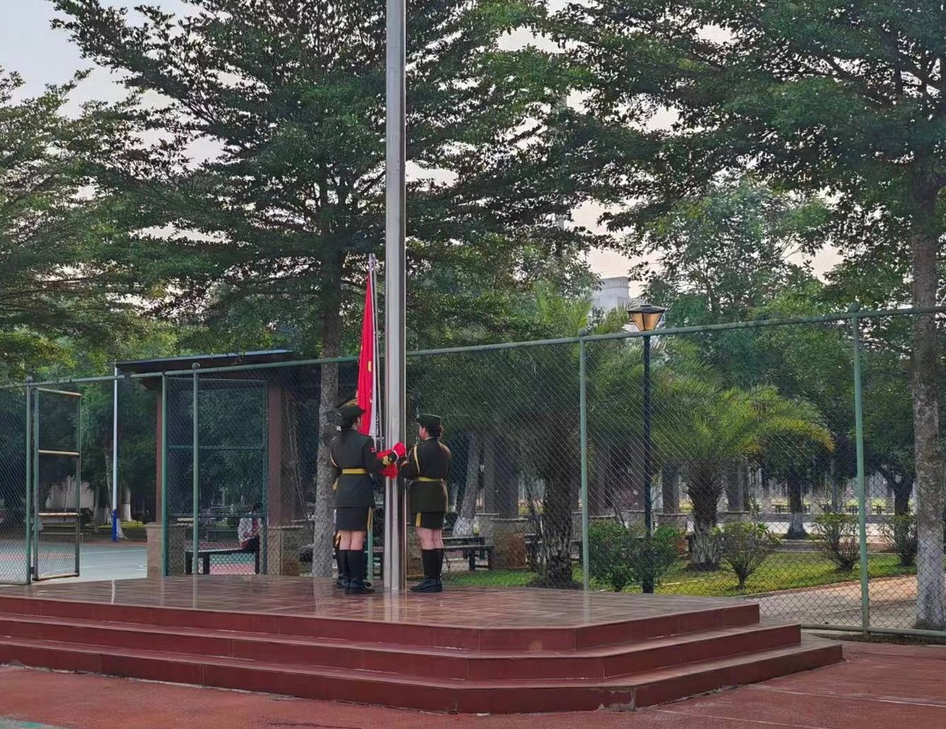 全体辅导员和2022级、2023级学生参加升国旗仪式。