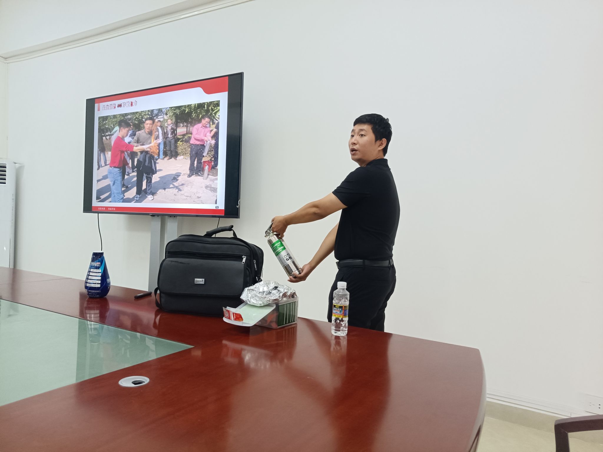 2024年5月16日,体育与健康学院举行消防安全知识讲座和灭火演练。消防宣传教员周俊威受邀对师生进行消防知识培训。他通过剖析省内外的系列典型火灾案例,重点讲解家庭起火、交通工具起火、公共场所起火的原因及危害,向大家普及消防安全知识、应急逃生以及灭火等技能,并现场对干粉灭火器、防毒面具的使用及操作方法进行演示。