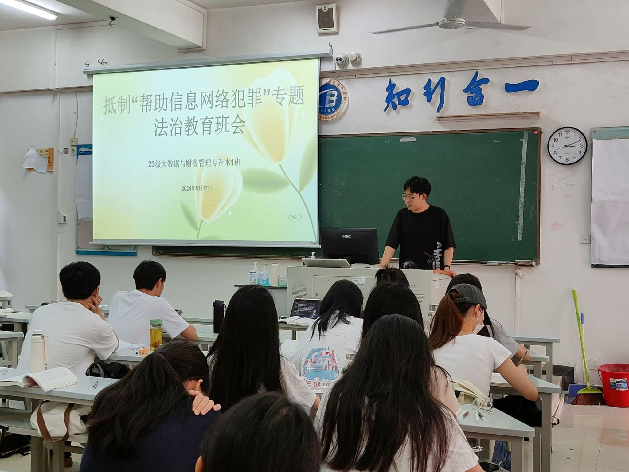 近日,财务管理学院组织开展抵制帮助信息网络犯罪活动罪主题教育班会,深入学习贯彻习近平法治思想,进一步增强学生的法治意识,提高学生的自我保护能力,防范违法犯罪活动,构建平安校园。