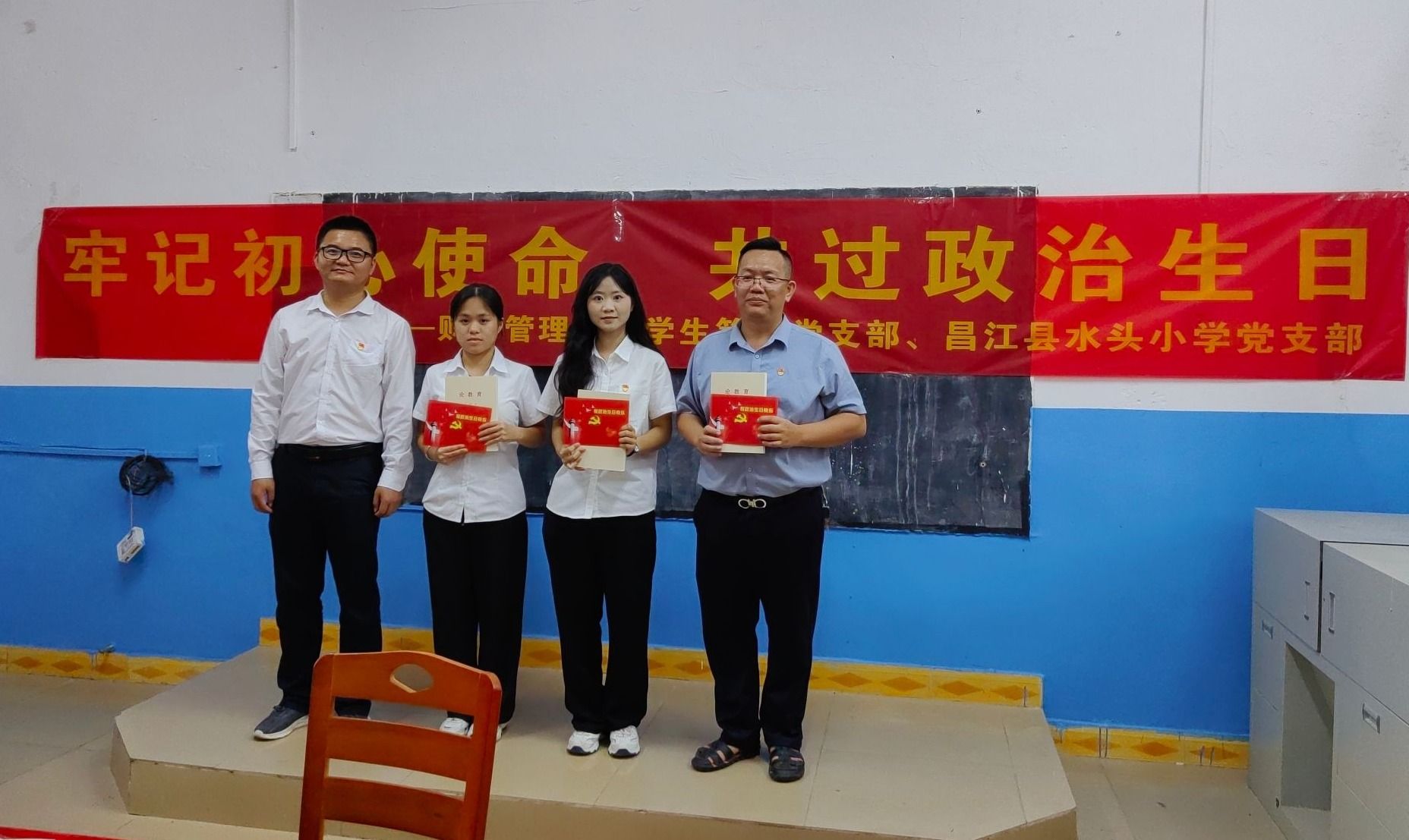2024年11月19日,米兰milan官方网站财务管理学院学生第二党支部和昌江黎族自治县石碌镇水头小学党支部共过政治生日,通过重温入党誓词、集中学习、分享感悟、赠送生日贺卡和《论教育》生日礼物,引导党员进一步淬炼党性修养、砥砺初心使命。