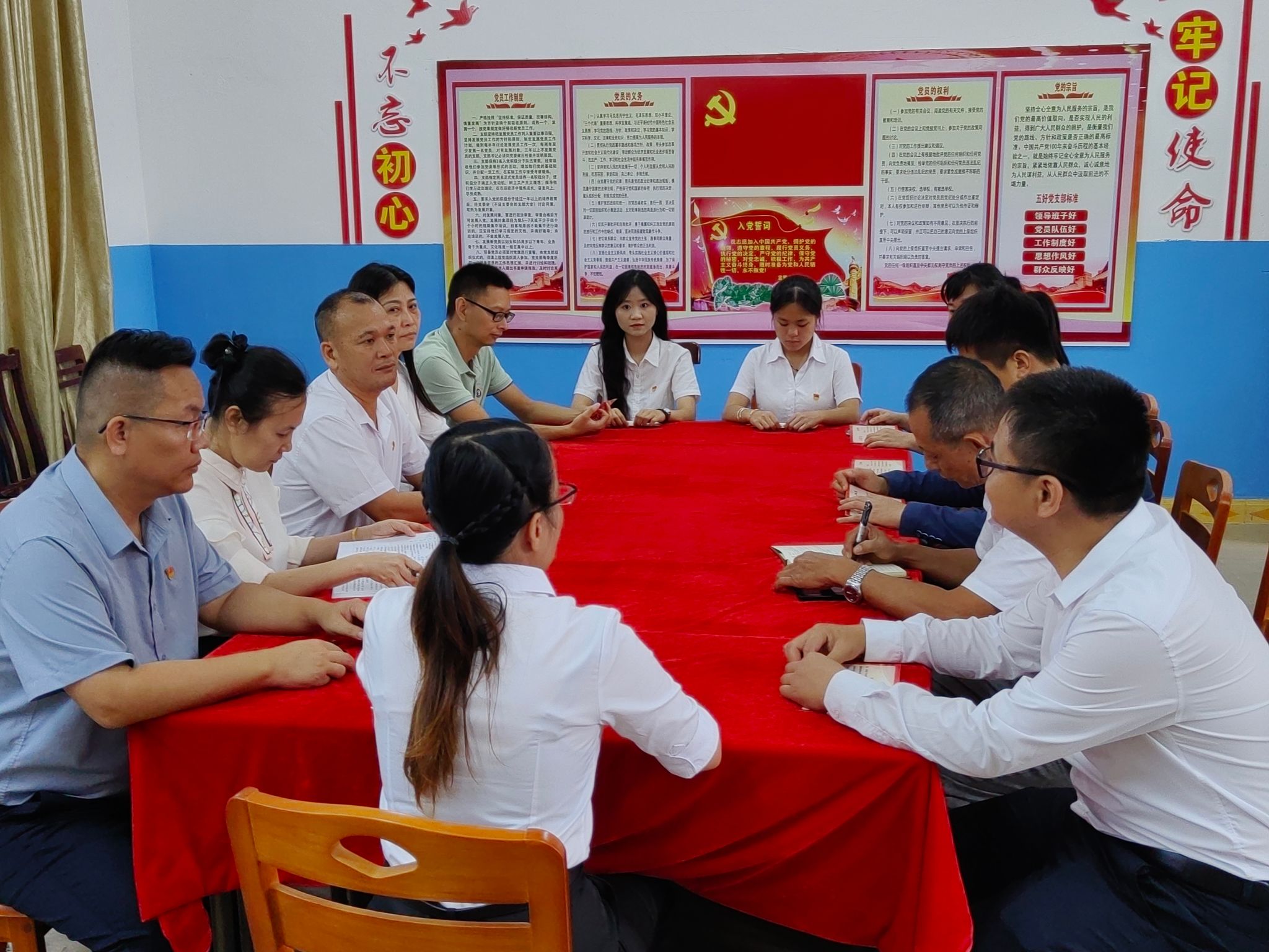 “我志愿加入中国共产党,拥护党的纲领,遵守党的章程……”活动中,面向鲜红的党旗,两个支部党员高举右拳,庄严宣誓。一双双坚定不移的眼神,一句句铿锵有力的誓言,全体党员仿佛又回到了第一次入党时的情景。