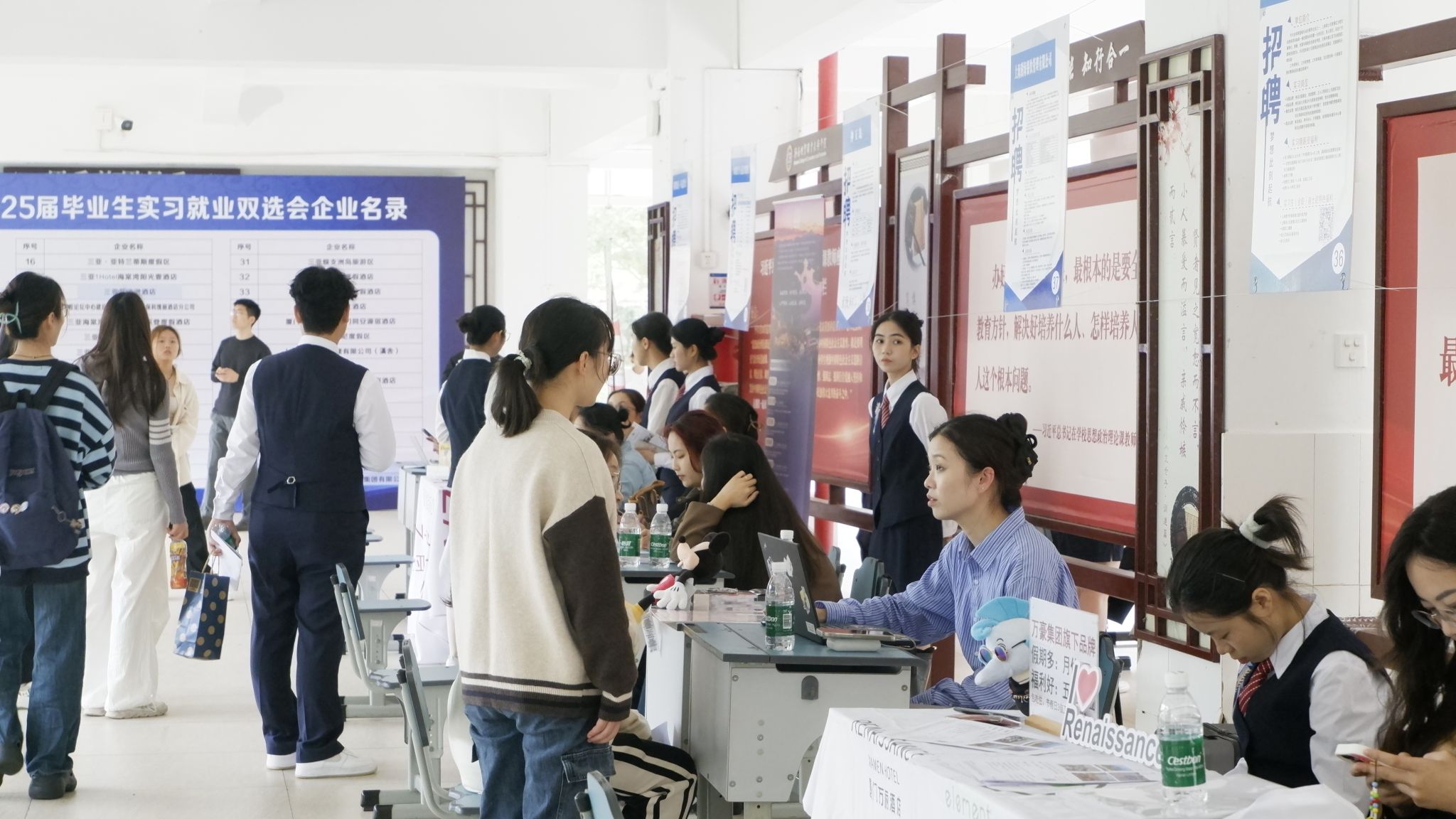 近日,国际旅游学院举办2024年秋季校园招聘会暨宏志助航实习就业双选会,更好地搭建2025届毕业生和用人单位对接交流平台。本次双选会共邀请企业70余家,提供岗位1500个,线上线下约600人次参会,提供就业指导近280人。