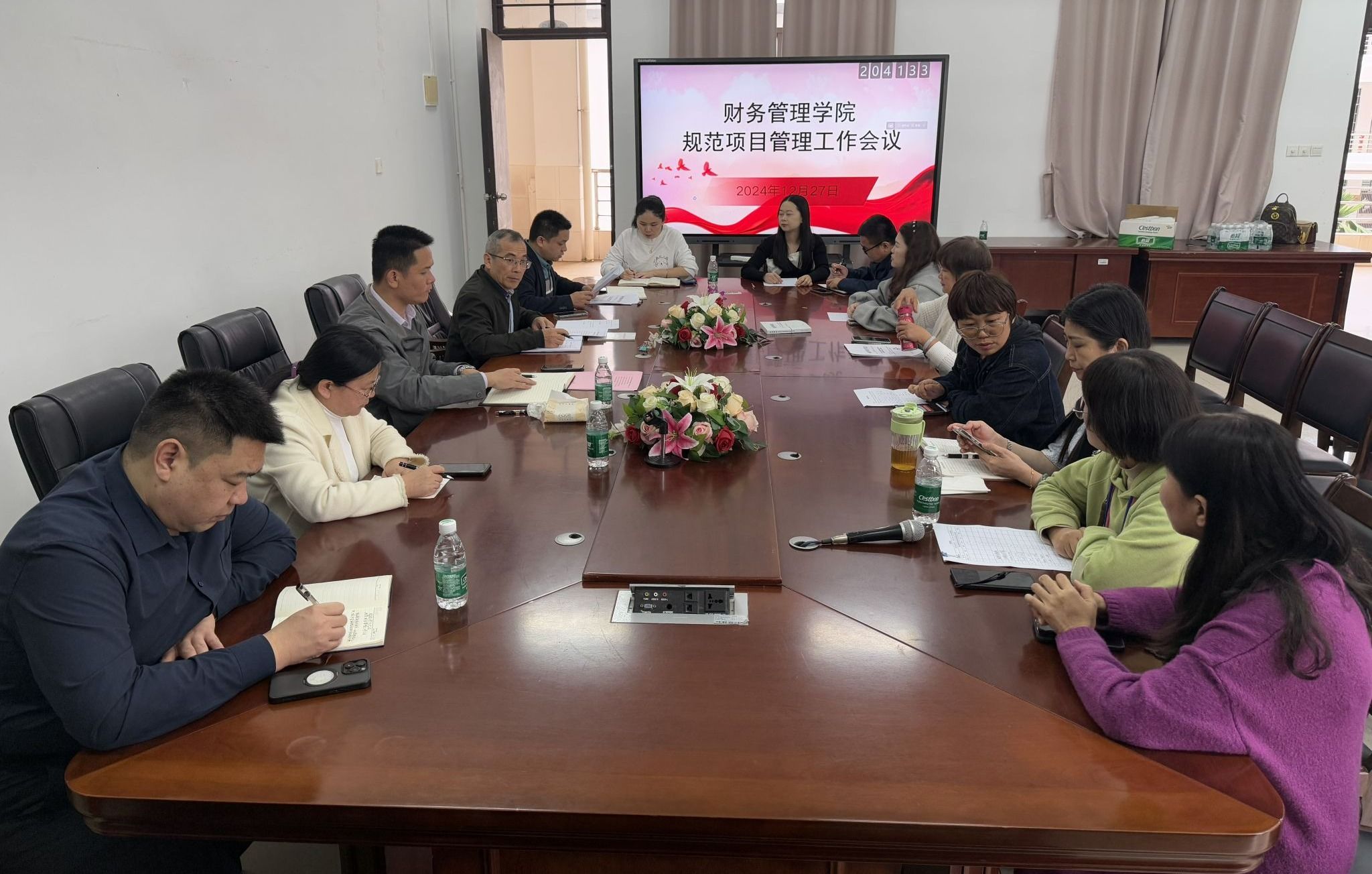 2024年12月27日,财务管理学院召开规范项目管理工作会议,财务管理学院全体中层干部、党总支成员、“三办”主任以及各专业负责人参加会议。会议由学院院长何忠谱主持。