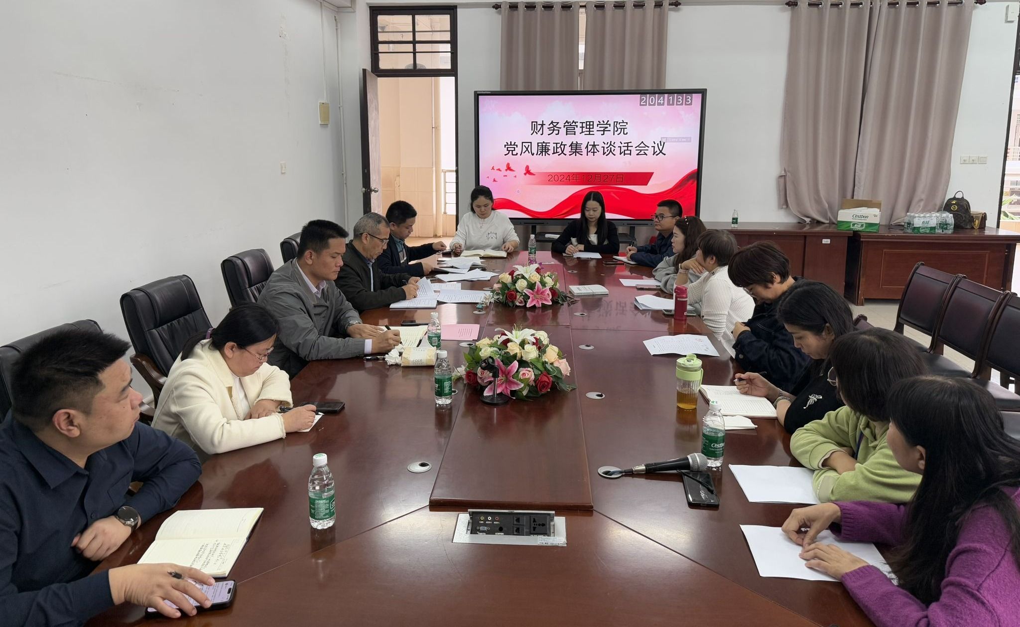 12月27日,财务管理学院召开2024年党风廉政集体谈话会议,对党政班子成员、“三办”主任、教研室主任和党支部书记等人员进行集体廉政谈话。会议由党总支书记范高智主持。