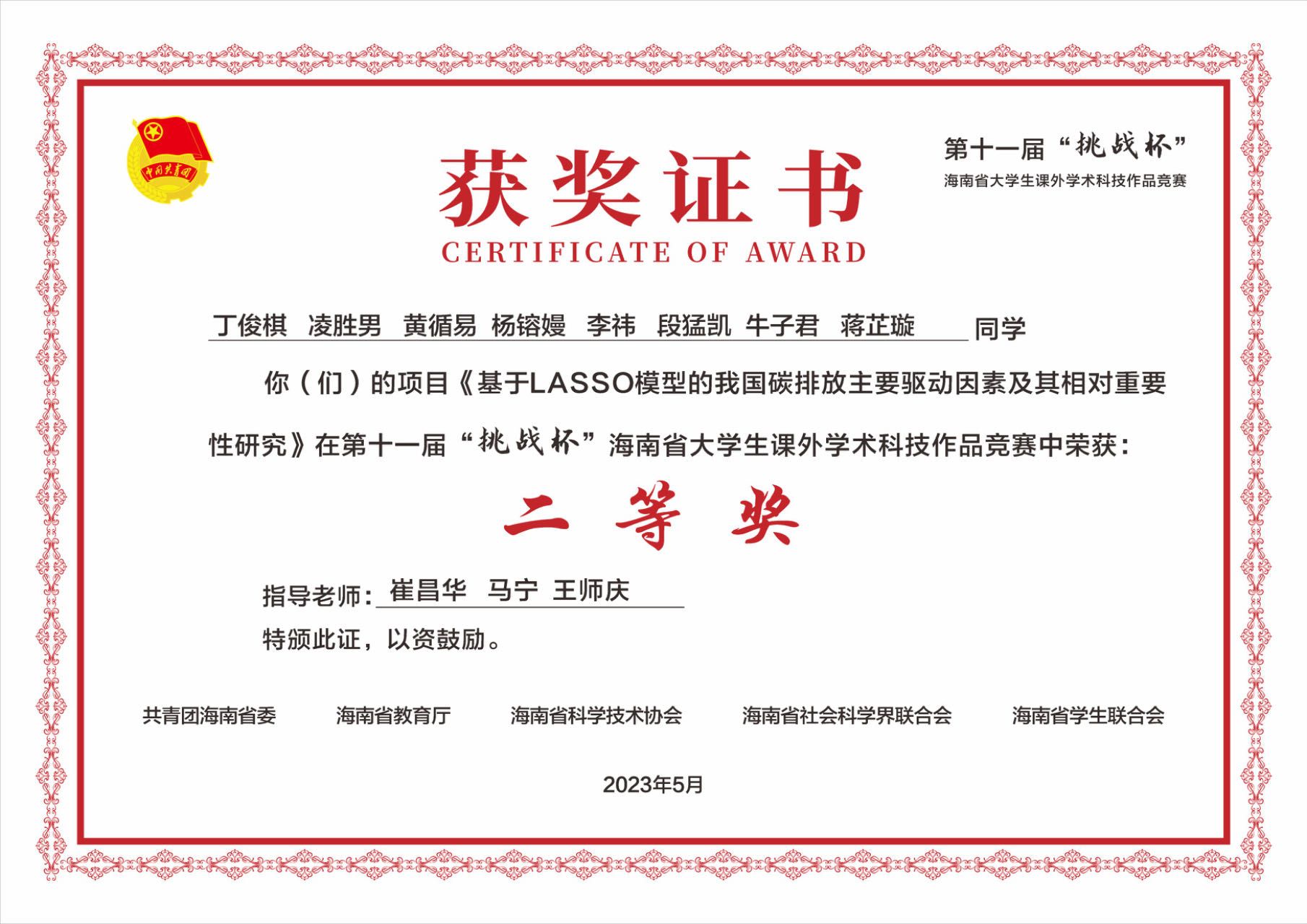 丁俊棋在创新创业的道路上,有很好的创意和很强的执行力。作为“骑森-柜在生活”项目的路演发言人,他精心准备每一个细节,投入大量时间进行练习,不断改进语音表达和肢体语言。“每一句话,我和我的团队成员都反复修改很多次,争取实现完美表达,让评委对我们的项目更感兴趣。”他和小伙伴们的努力和坚持也最终结出累累硕果,他们的项目在海南省第八届、第九届“互联网+”大学生创新创业大赛和2022年“挑战杯”大学生创新创业计划竞赛省级决赛中获得银奖。